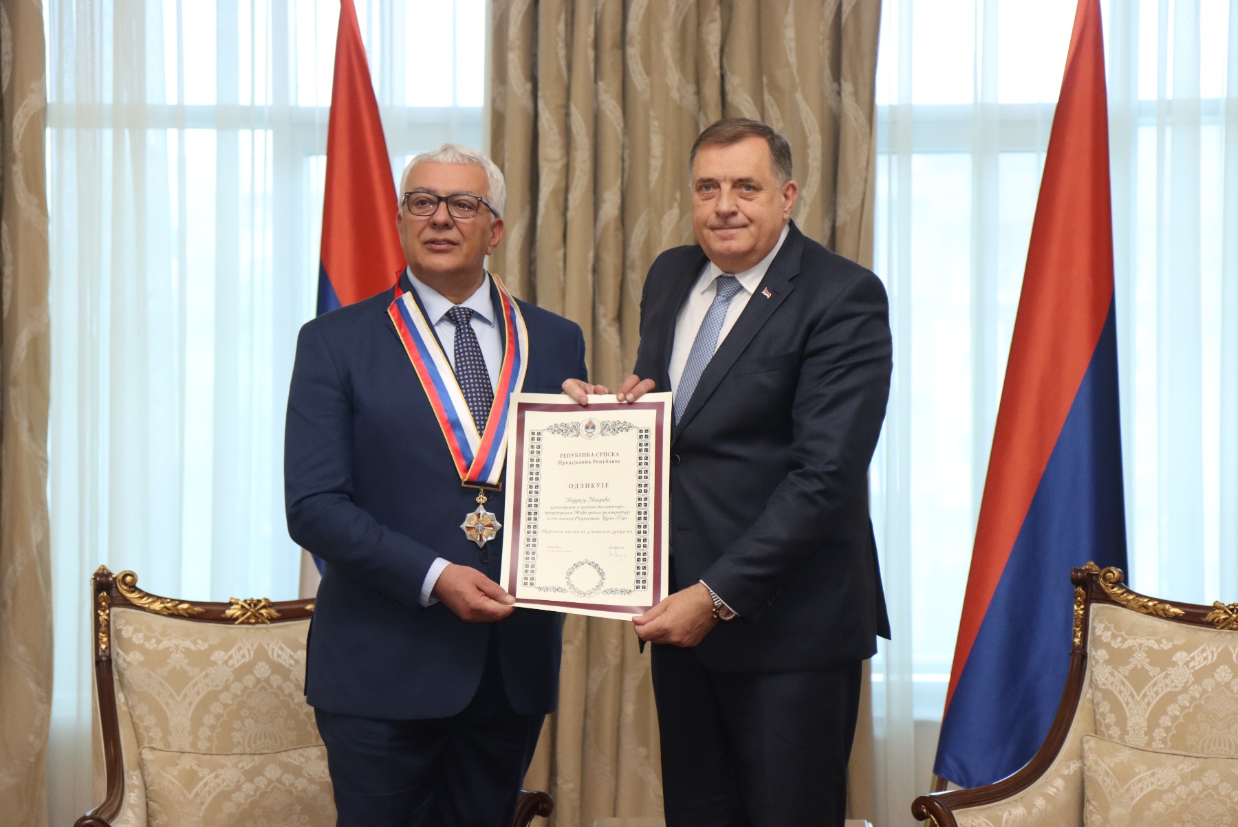 The President of the Republic of Srpska Milorad Dodik awarded today, in Banja Luka, the President of the New Serbian Democracy and the Member of the Parliament of Montenegro Andrija Mandić with the Order of Honor with Golden Rays for recognised public work and achievements, as well as for his merits in developing and strengthening…