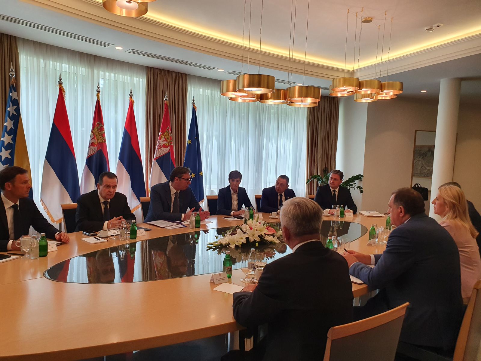 The President of the Republic of Srpska Željka Cvijanović, the Speaker of the National Assembly of the Republic of Srpska Nedeljko Čubrilović, the Prime Minister of the Republic of Srpska Radovan Višković and the Serb Member of the Presidency of BiH Milorad Dodik met today in Belgrade with the President of the Republic of Serbia…