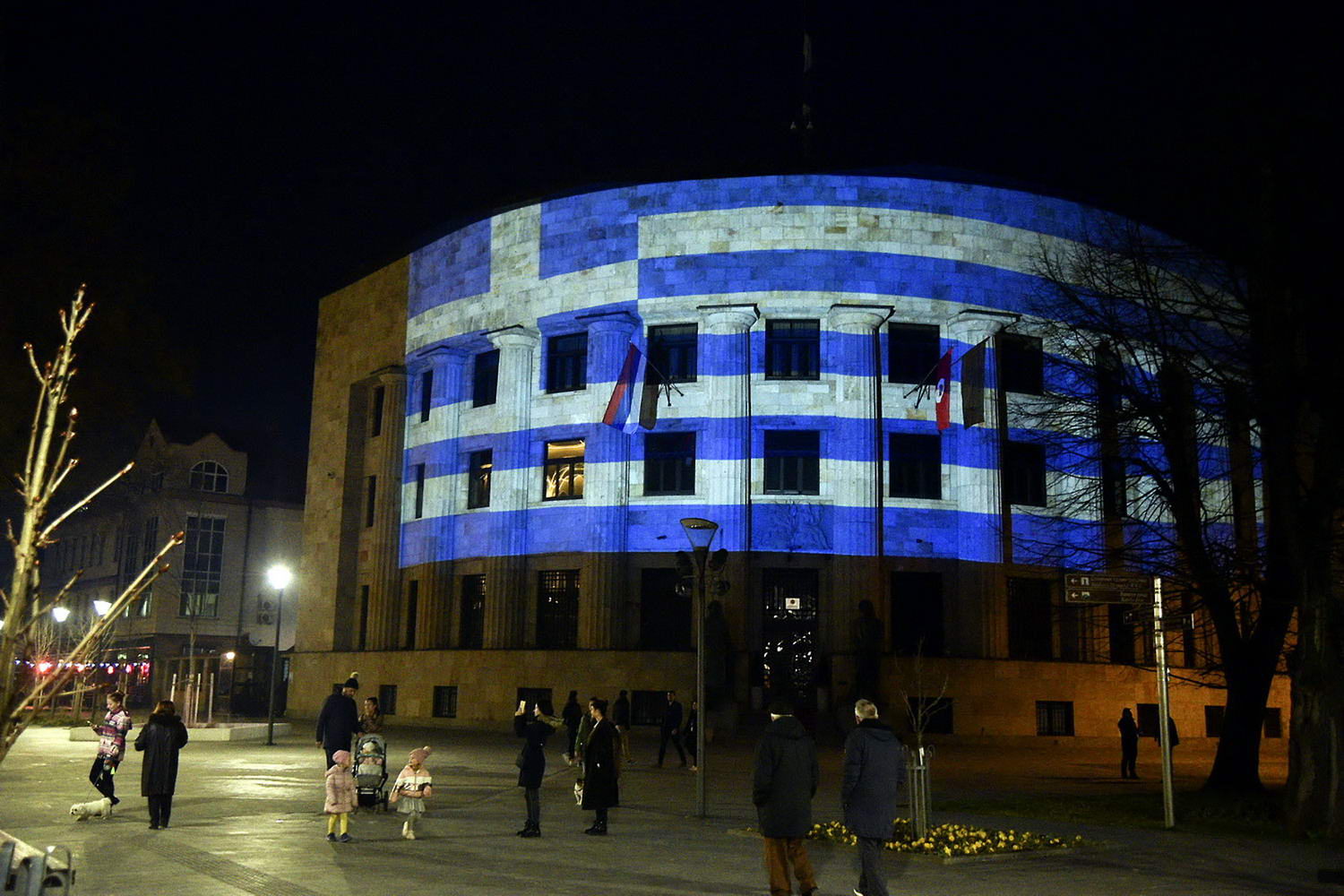 To mark 200th Anniversary of Greek Uprising and Beginning of Struggle for National Liberation Colours of Greek Flag Displayed on Palace of the Republic