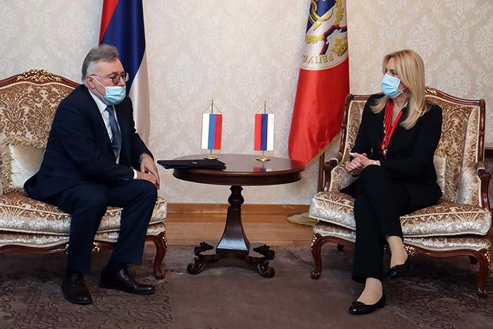 The President of the Republic of Srpska, Željka Cvijanović, received today in Banja Luka the Ambassador of the Russian Federation to BiH, Igor Kalabukhov, for an inaugural meeting. The President of the Republic of Srpska stated that one of the priorities of Srpska is to improve co-operation with the Russian Federation in all segments, while…