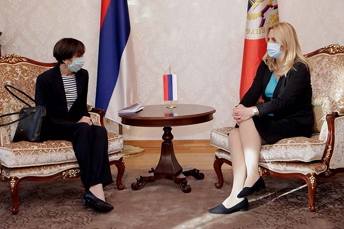 The President of the Republika Srpska, Željka Cvijanović, spoke today in her office with the Ambassador of Germany to BiH, Margret Uebber. President Cvijanović and Ambassador Uebber exchanged views on the current political and economic situation in Srpska and BiH, as well as on the European integration process, with special emphasis on the 14 priorities…