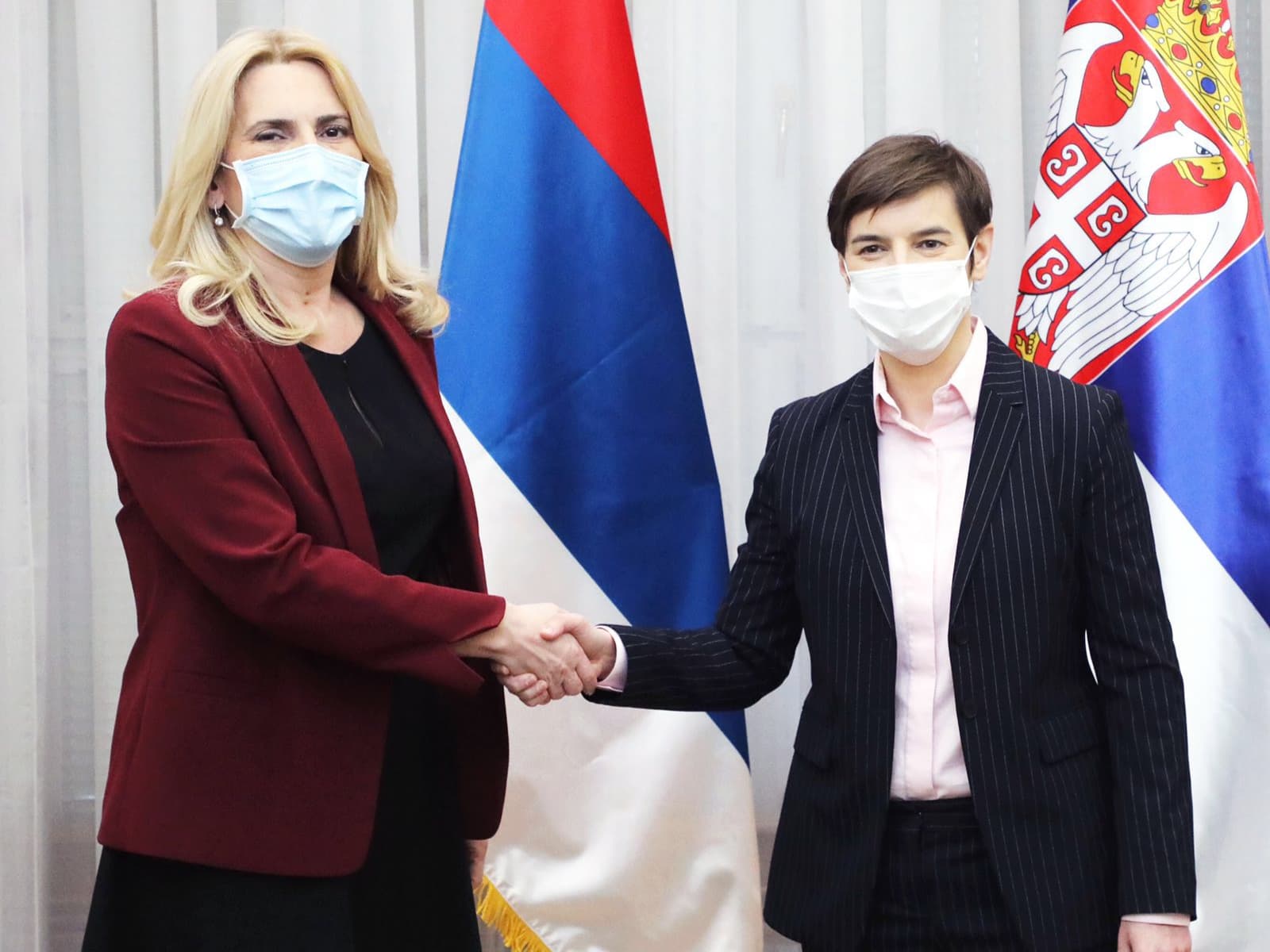 The President of the Republic of Srpska Željka Cvijanović met today in Belgrade with the Prime Minister of the Republic of Serbia Ana Brnabić. The President of the Republic of Srpska stated after the meeting that the strategic interest of Srpska is the implementation of joint projects with Serbia, such as “Buk Bijela”, Trebinje Airport,…
