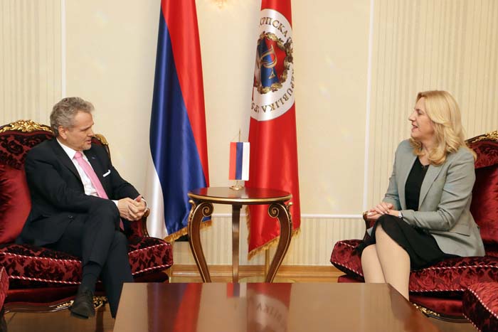The President of the Republic of Srpska Željka Cvijanović met in her office today with the Head of the EU Delegation to BiH Ambassador Johann Sattler and discussed the current political and economic situation in Srpska and BiH, as well as the identified priorities that need to be fulfilled in order for BiH to make…