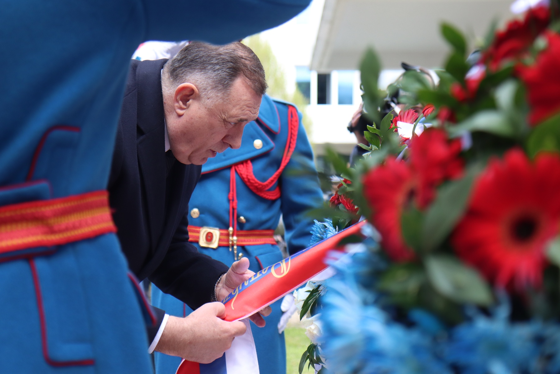 At the beginning of marking the Republic of Srpska Police Day, the Commander of the Honorary Unit of the Ministry of Internal Affairs of the Republic of Srpska Vitomir Petričević handed over the report to the President of the Republic Milorad Dodik.