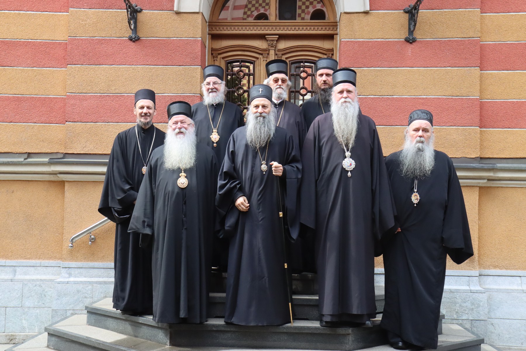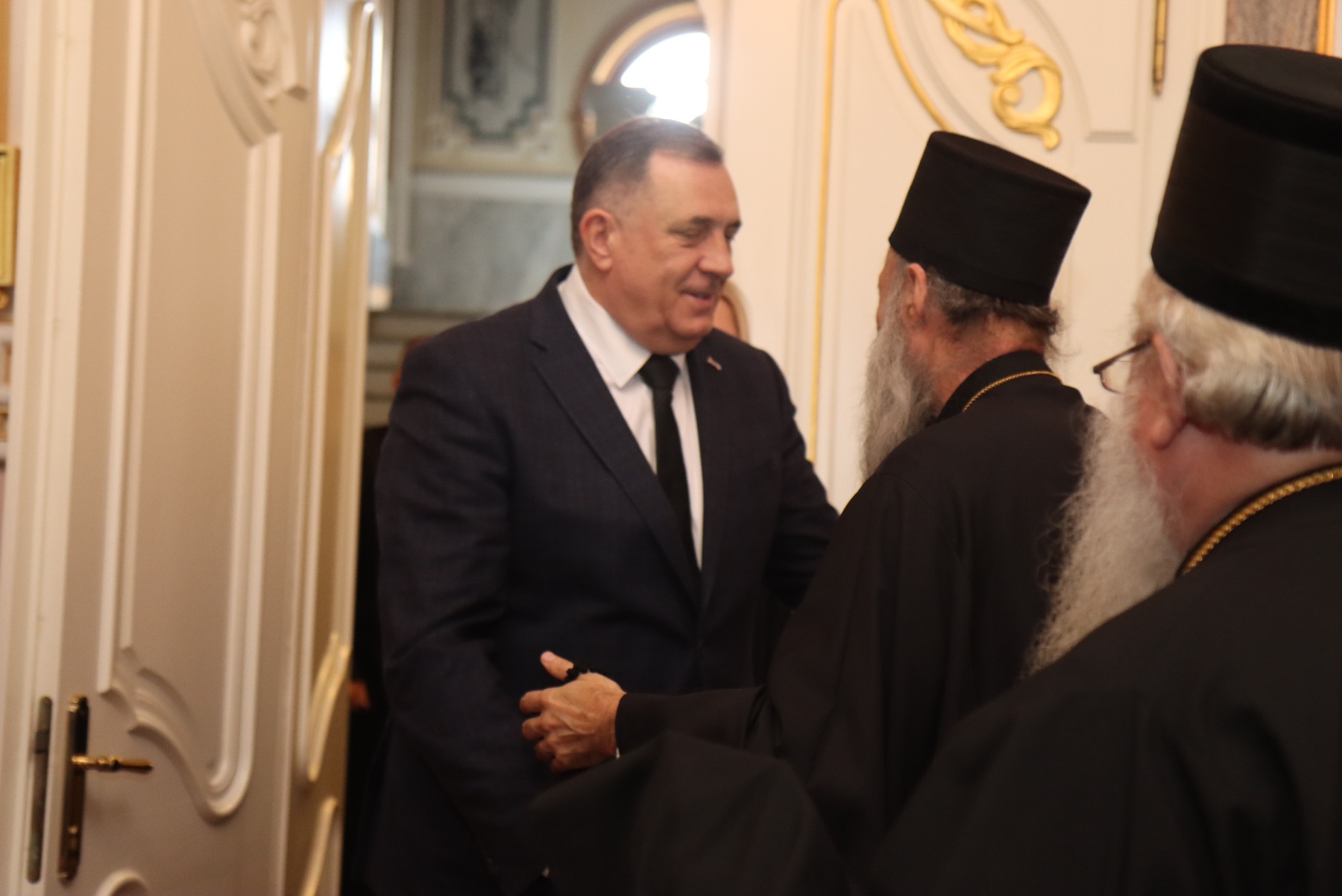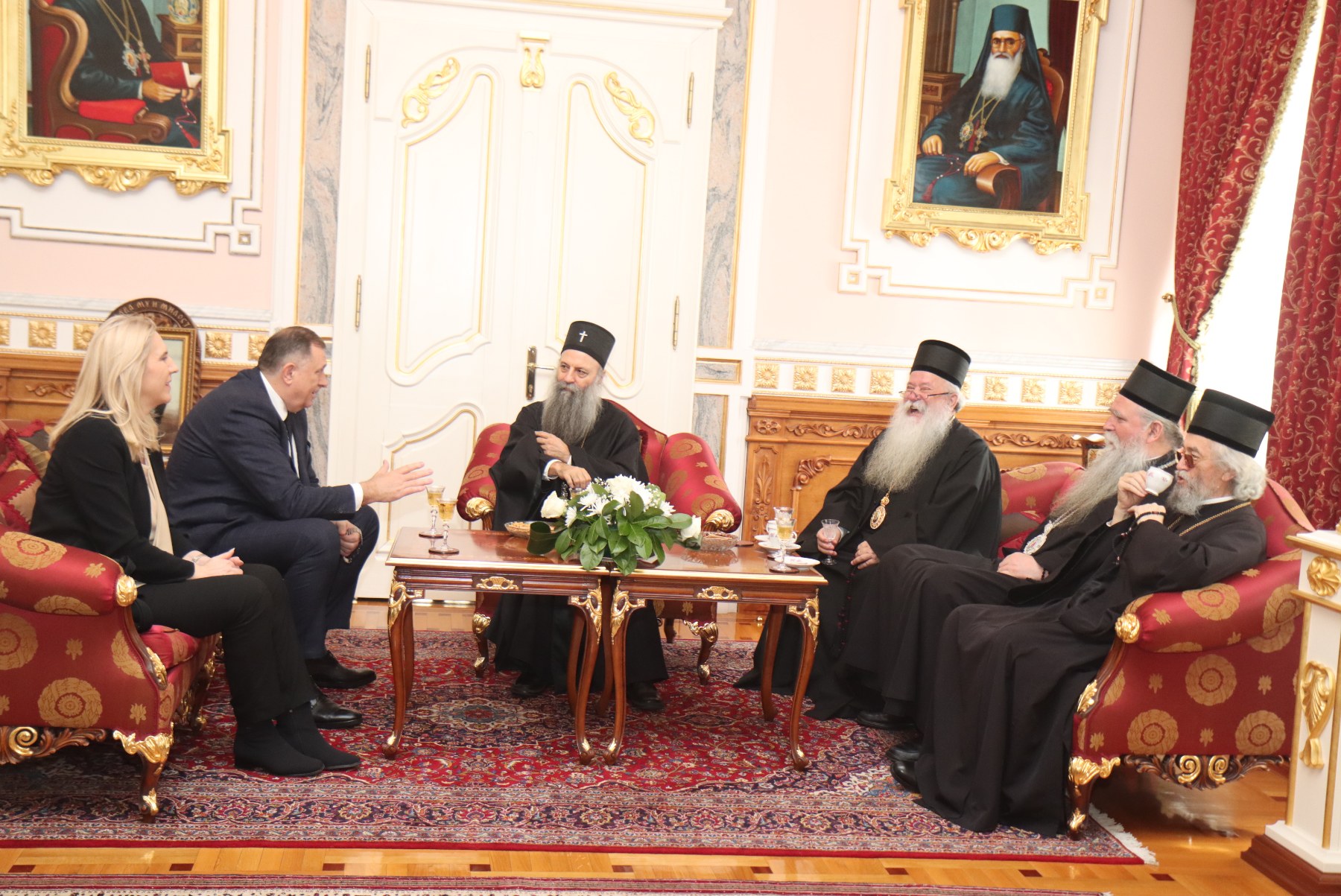 The President of the Republic of Srpska Milorad Dodik and the Serb member and Chairwoman of BiH Presidency Željka Cvijanović met today in Banja Luka with members of the Holy Synod of Bishops led by His Holiness Serbian Patriarch Porfirije.