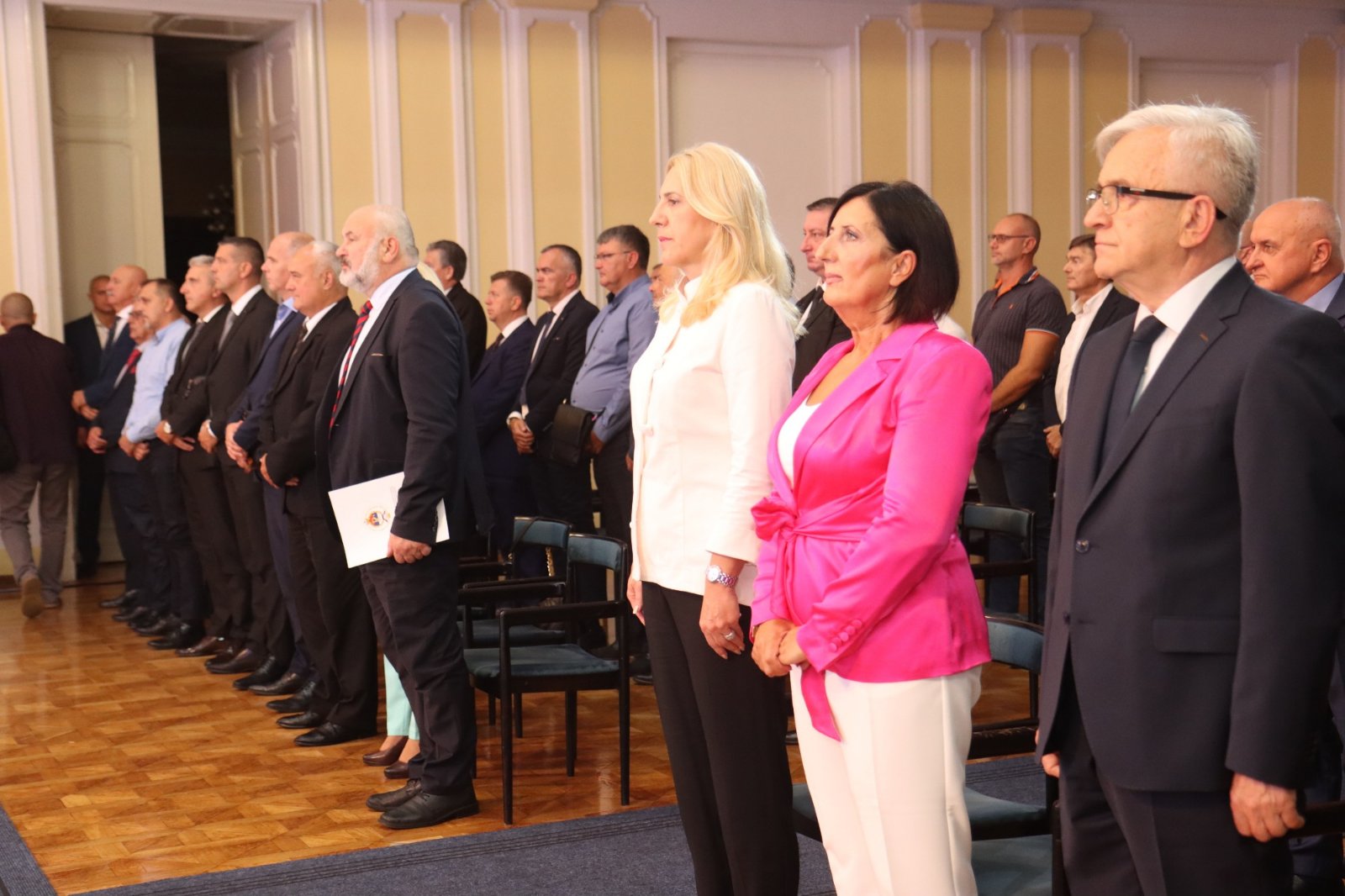 The President of the Republic of Srpska Željka Cvijanović attended today in Banja Luka the ceremonial academy on the occasion of the 30th anniversary of the Confederation of Trade Unions of the Republic of Srpska.