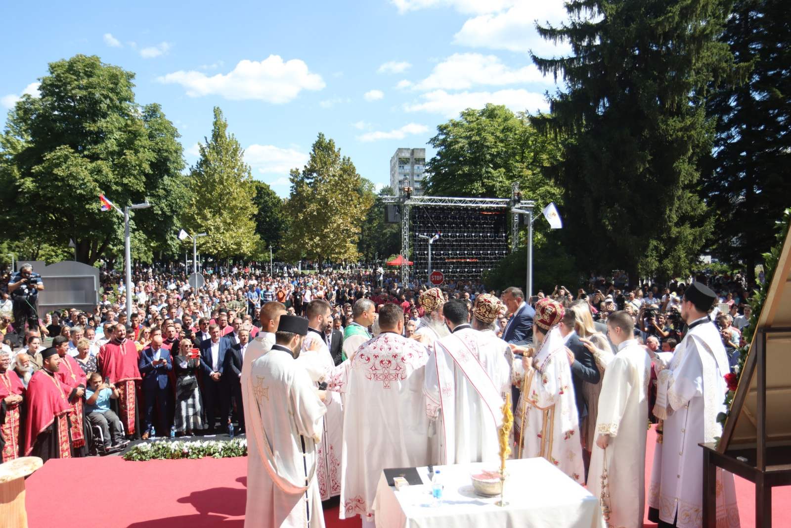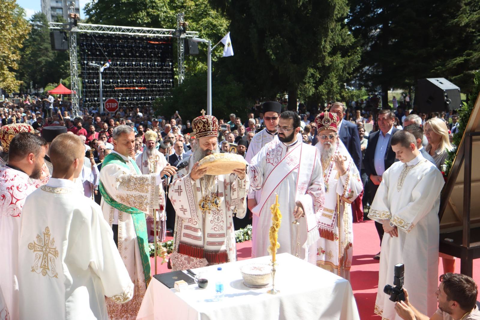 The President of the Republic of Srpska attended the Holy Hierarch’s Liturgy led by His Holiness the Serbian Patriarch Porfirije, followed by a liturgy in the streets of this city, and a rite of cutting the feast cake.
