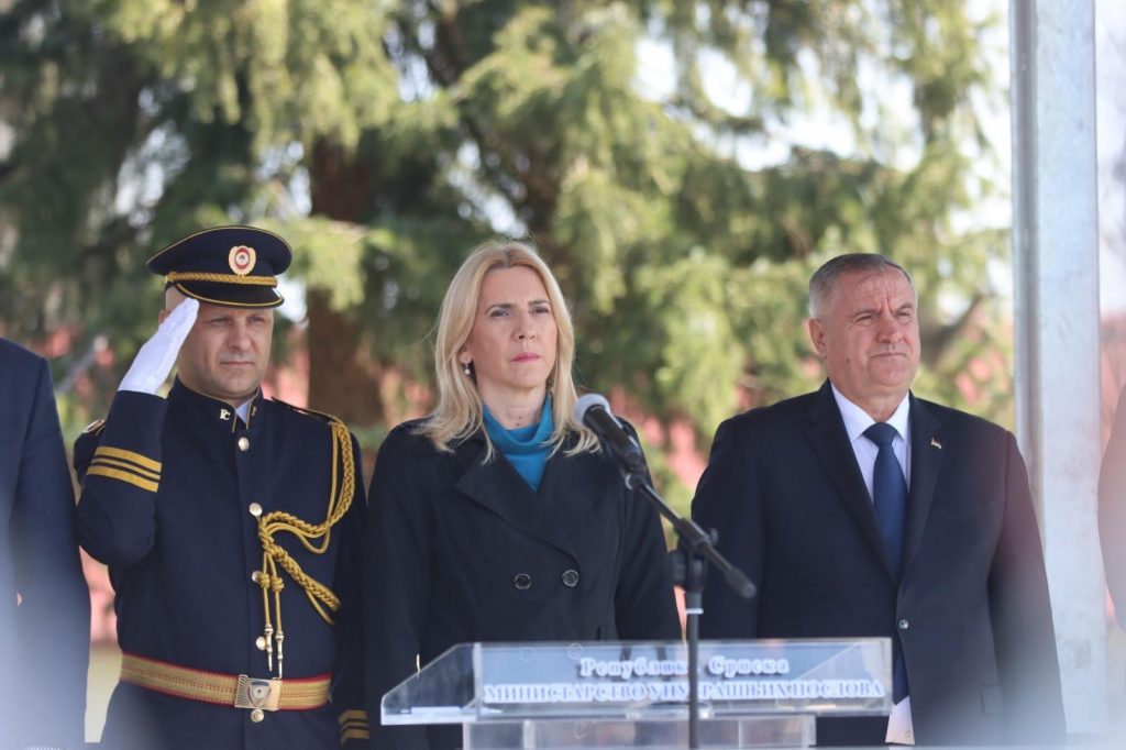 Today, the President of the Republic of Srpska Željka Cvijanović attended the central ceremony in Zalužani marking the Police Day and the 30th anniversary of the Ministry of the Interior of the Republic of Srpska.