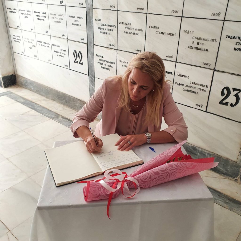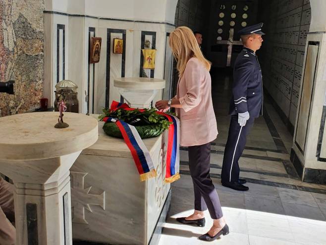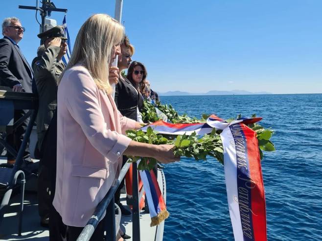 The President of the Republic of Srpska laid a wreath in the Mausoleum of Serbian Warriors and signed the books of mourning, after which she laid a wreath at the open sea in the “Blue Tomb”.