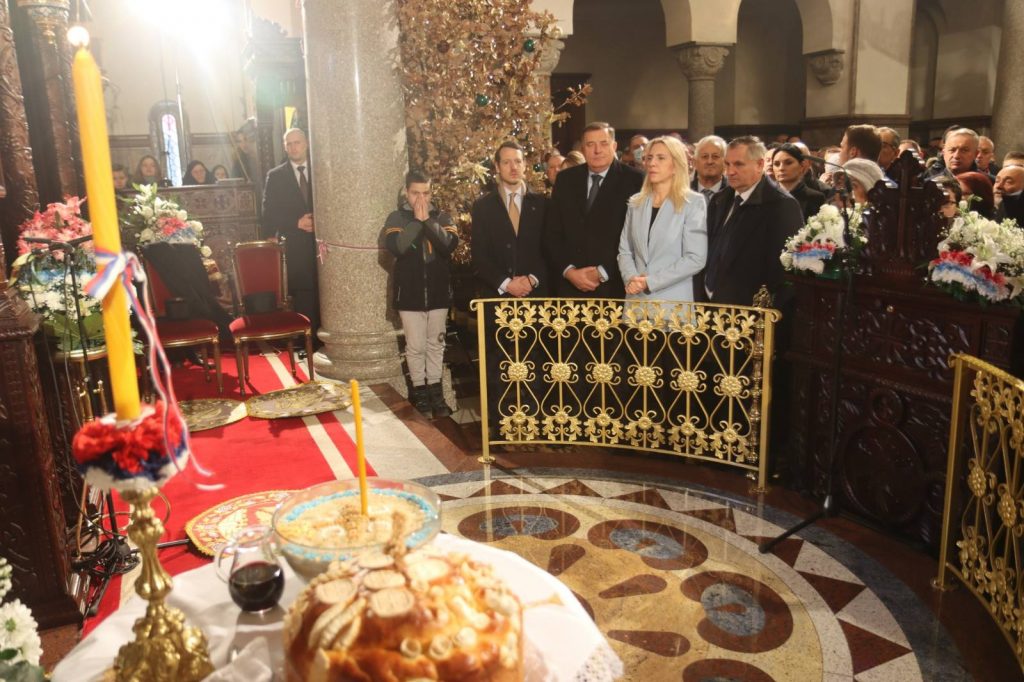 Today, the President of the Republic of Srpska Željka Cvijanović attended the Holy Liturgy in the Church of Christ the Savior, served by His Holiness the Serbian Patriarch Porfirije, and the rite of breaking the feast cake on the occasion of the Holy Archdeacon and First Martyr Stefan.