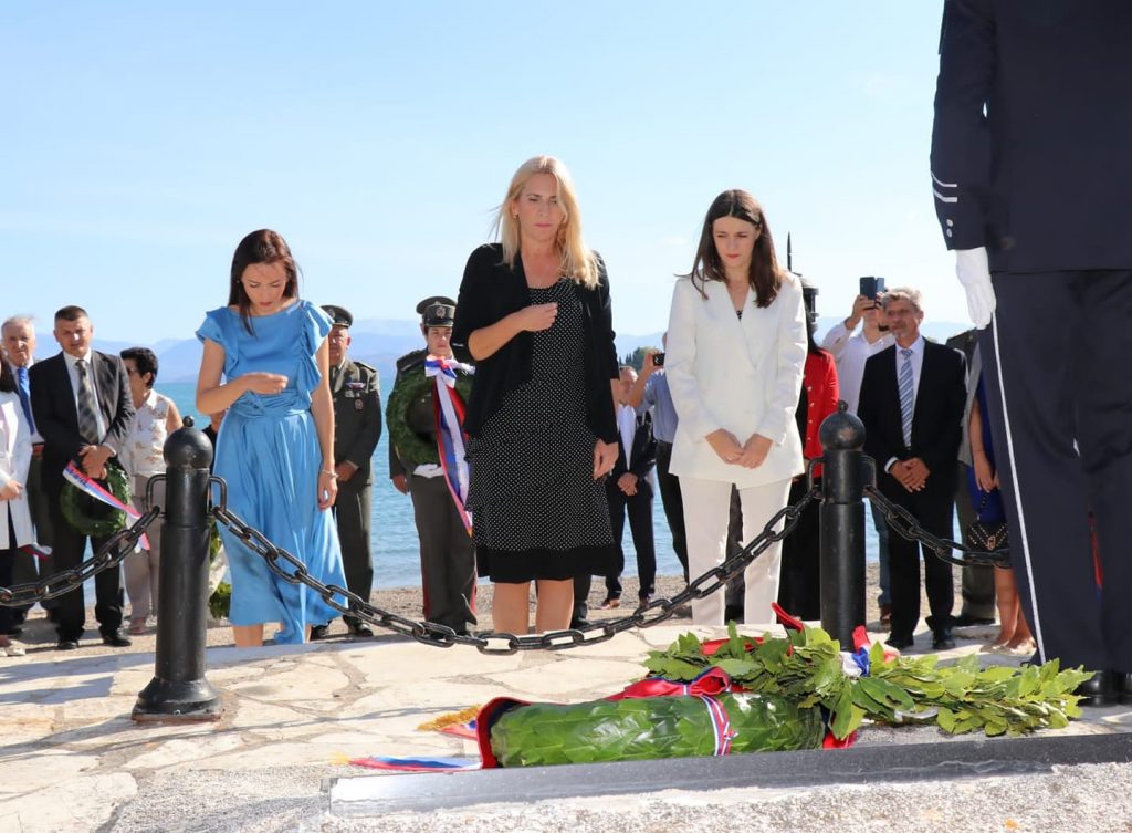 Today, the President of the Republic of Srpska Željka Cvijanović laid a wreath at a memorial place in the port of Gouvia, at the place where the first Serbian soldiers landed on January 6, 1916.