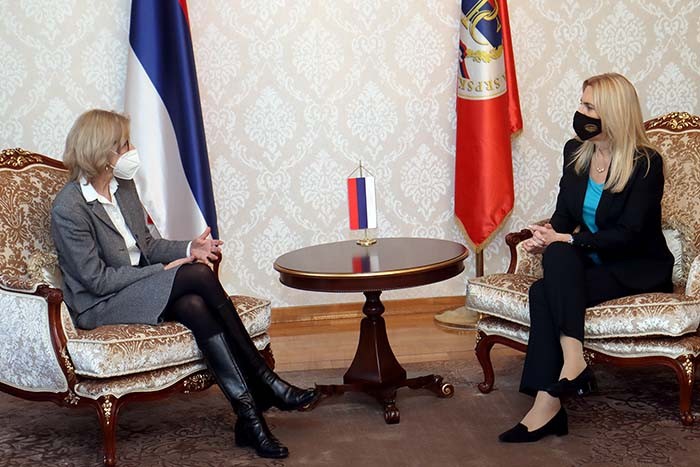 The President of the Republic of Srpska Željka Cvijanović met today in her office with the Ambassador of the Republic of Austria to BiH Ulrike Hartmann and discussed the current political and economic situation in Srpska and BiH.