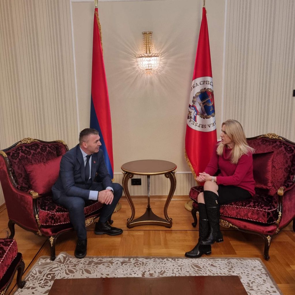 The President of the Republic of Srpska Željka Cvijanović met today in her office with the Director of the Republic Administration of Civil Protection Milan Novitović.