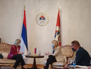 The President of the Republic of Srpska Željka Cvijanović met today in her office with the Head of the International Organisation for Migration (IOM) in BiH and the Sub-Regional Coordinator for the Western Balkans Laura Lungarotti.