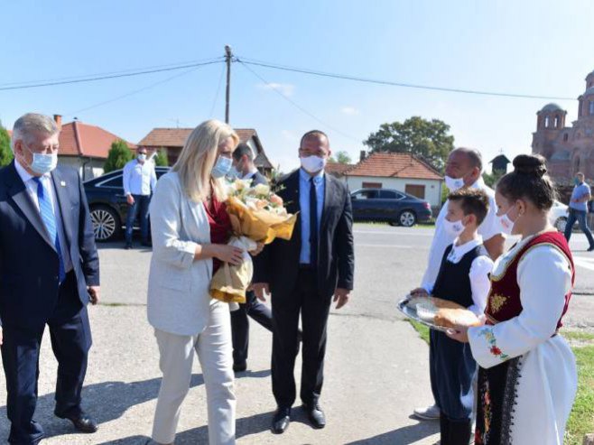 Today, the President of the Republic of Srpska Željka Cvijanović visited the works on the gym in the Elementary School “Jovan Dučić” in Patkovača near Bijeljina.