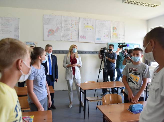 “I am convined that this is just one of the misfortunes that we will successfully overcome and soon return to a normal life in schools with lots of contacts, joy and games, of course as an accompanying thing to the teaching process that takes place here”, said the President of the Republic of Srpska.