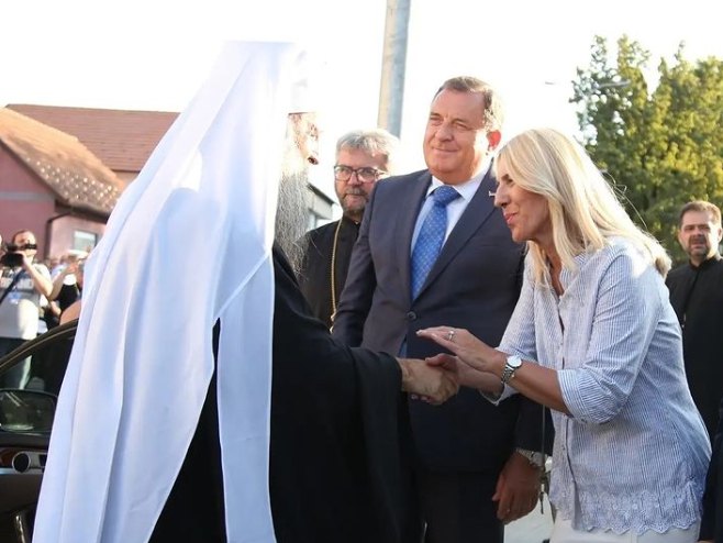 The President of the Republic of Srpska Željka Cvijanović welcomed His Holiness the Serbian Patriarch Porfirije tonight in Doboj.