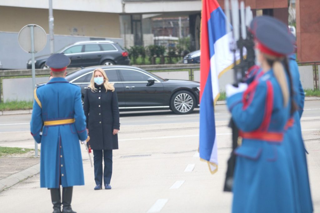 The President of the Republic of Srpska, Željka Cvijanović, today, on occasion of the marking the Day of the Republic of Srpska Police, attended the memorial service and the wreath-laying ceremony at the Central Memorial to the Killed and Missing Members of the Ministry of Interior of the Republic of Srpska.