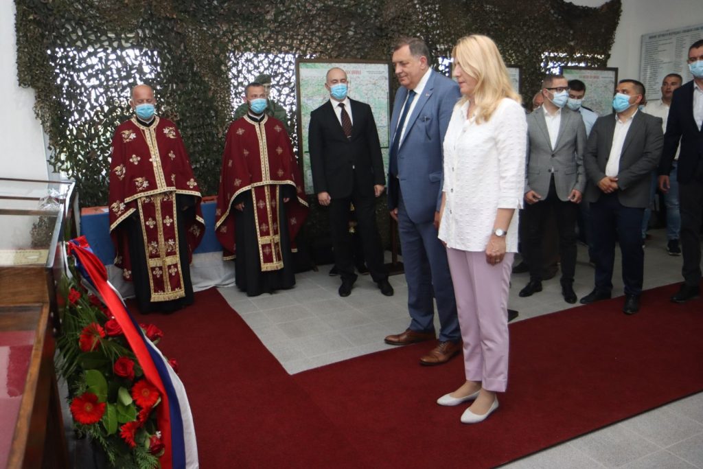 The President of the Republic of Srpska laid a wreath in the Memorial Room, where a memorial service was held for the fallen and dead fighters, and after that she saluted the surviving members and lined up the unit.