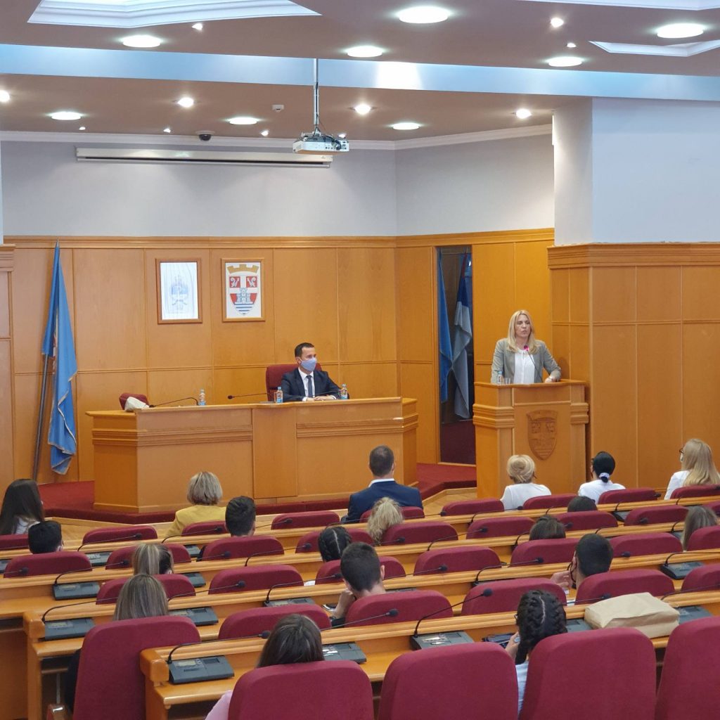 The President of the Republic of Srpska, Željka Cvijanović, spoke today with the leadership of the City of Trebinje and attended preparatory classes for high school graduates organised by the City Administration of Trebinje.