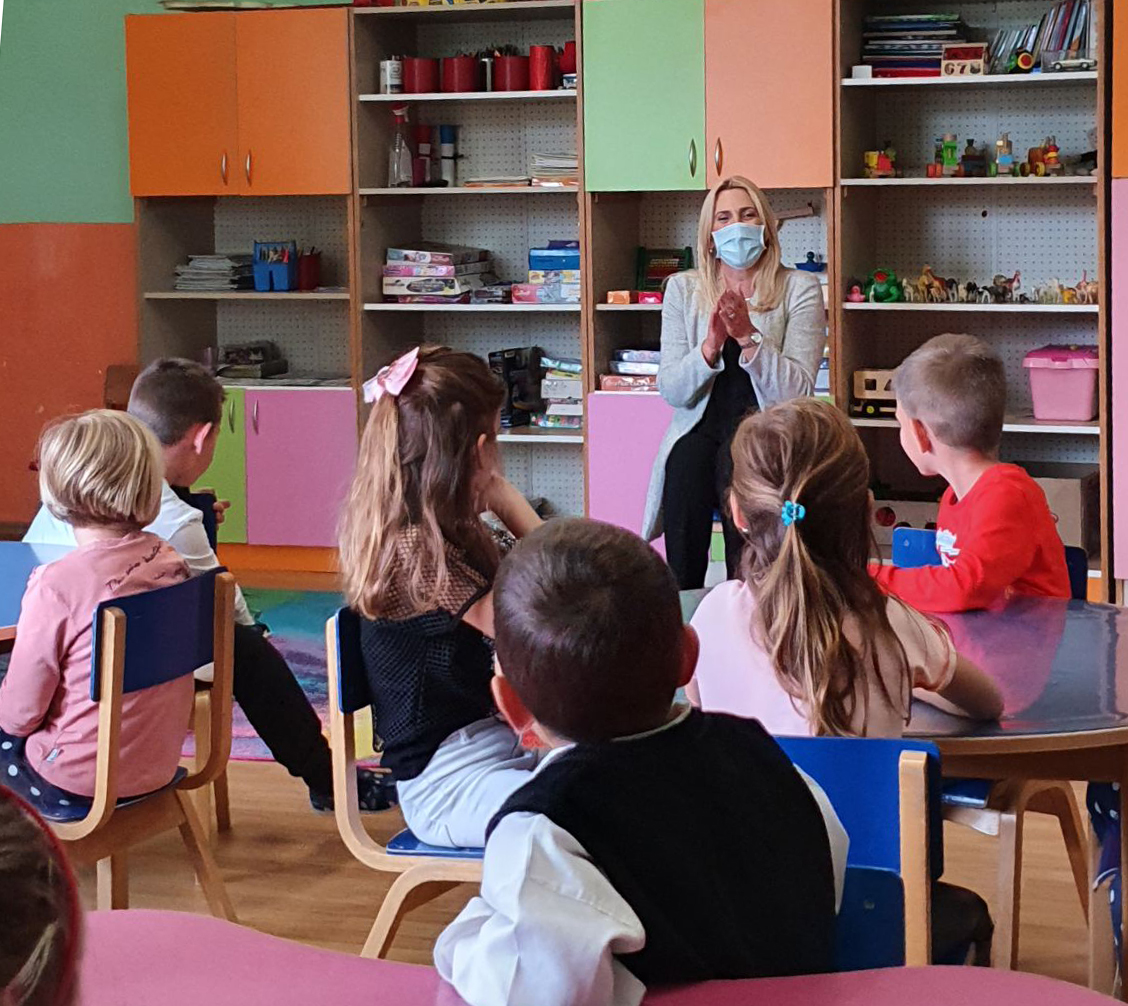 While touring the construction works of the new kindergarten building, the President enjoyed the company of children of the “Bubamara” /Ladybird/ kindergarten, who on the occasion gave her a bouquet of flowers. The President of the Republic said that Pale is the heart of life in the Republic of Srpska.