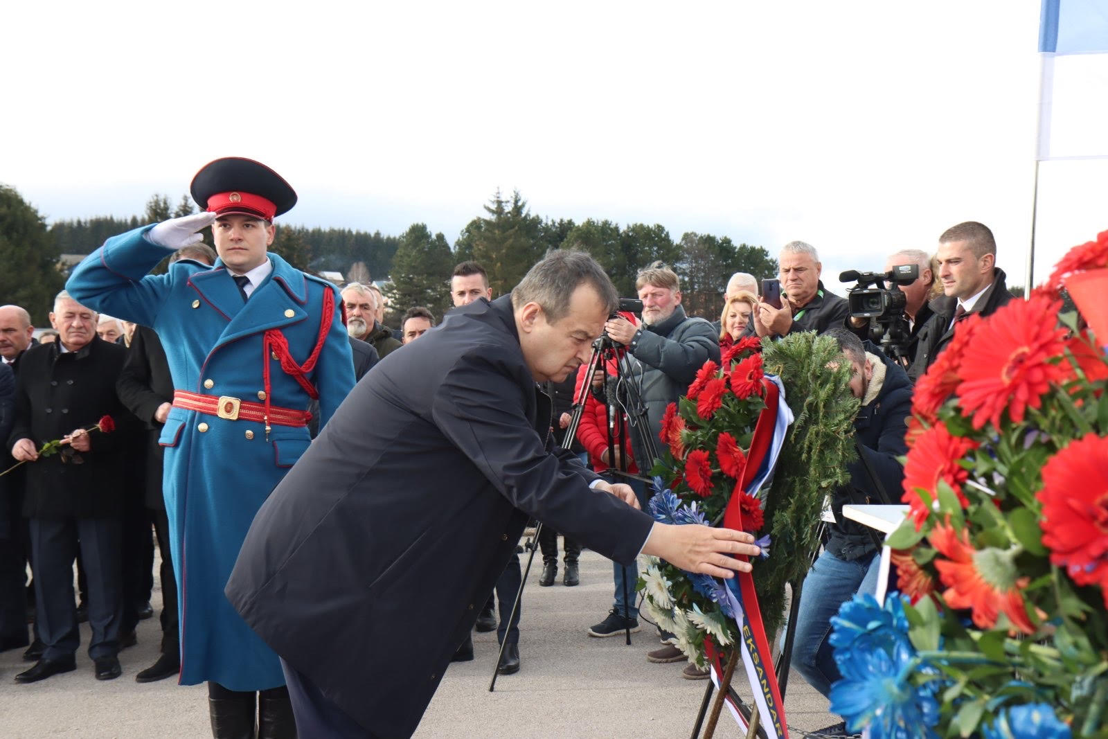 The President of the Republic of Srpska Milorad Dodik and the delegation of the Government of Serbia, including Nikola Selaković, Danica Grujičić and Ivica Dačić, today laid wreaths at the Serbian military memorial cemetery Mali Zejtinlik in Sokolac on the occasion of the Day of the Republic of Srpska.