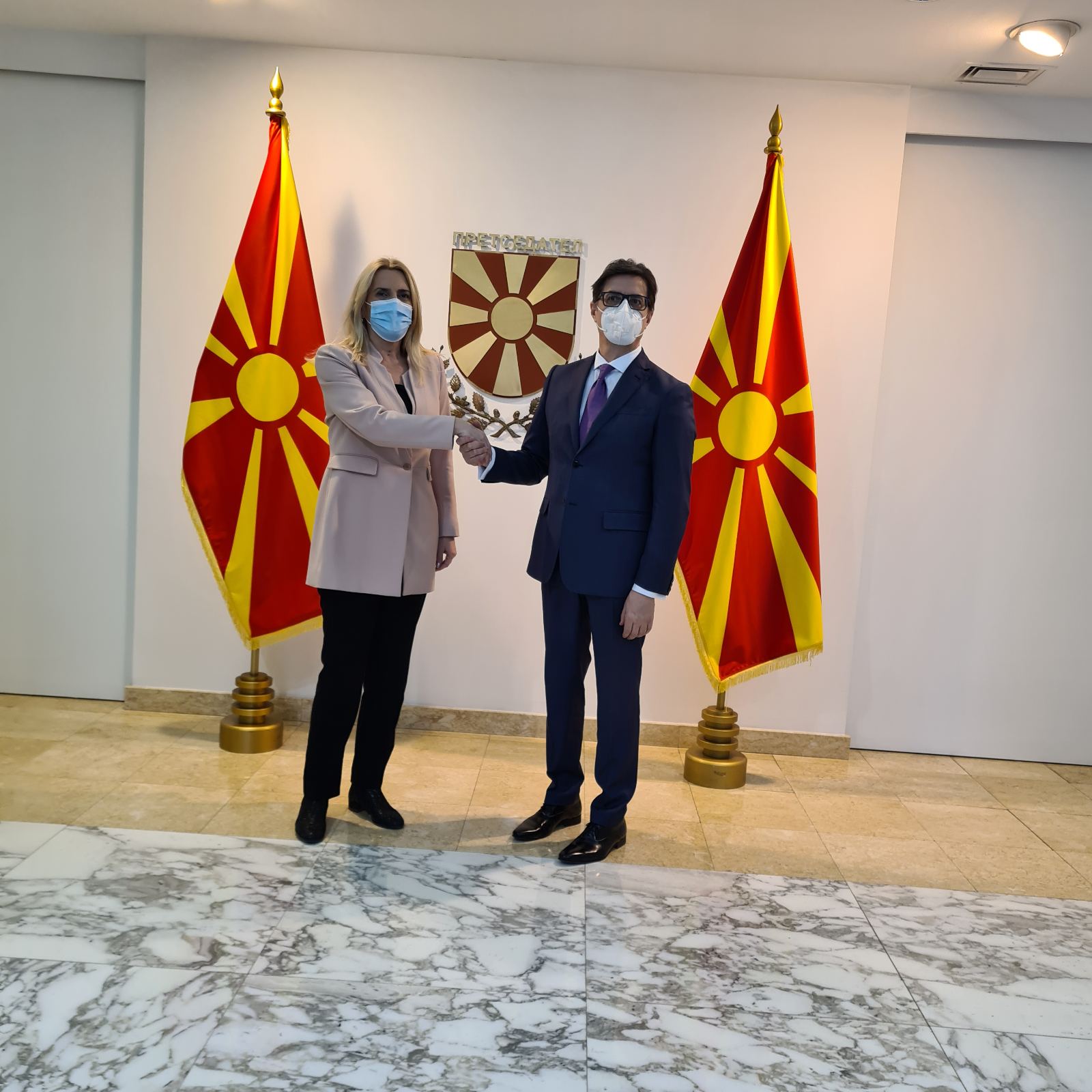 Predsjednica Republike Srpske Željka Cvijanović razgovarala je danas u Skoplju sa predsjednikom Sjeverne Makedonije Stevom Pendarovskim.