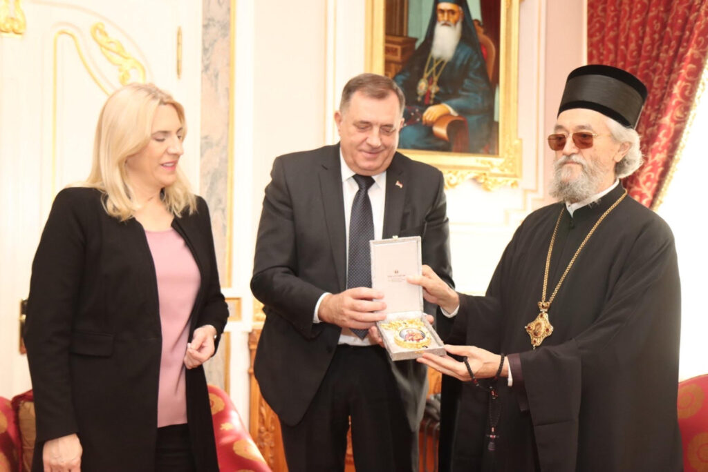 Tom prilikom, predsjednik Republike Srpske i srpski član i predsjedavajuća Predsjedništva BiH uručili su episkopu Jefremu panagiju presvete Bogorodice.