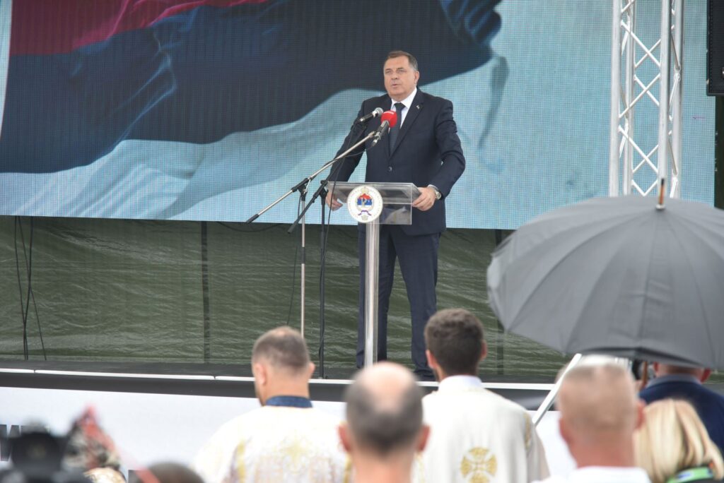 “Zašto u ovom danu kada obilježavamo stradanje Srba? Zašto misliš da smo spremni da pognemo glavu? Nismo spremni. Republika Srpska neće prihvatiti nijednu odluku lažnog visokog predstavnika”, naglasio je predsjednik Dodik i ponovio da je Republika Srpske nastala i da je odbranjena voljom naroda.