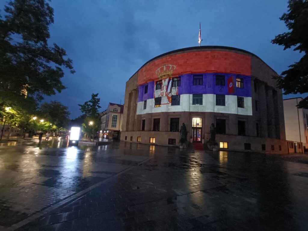Povodom obilježavanja Dana srpskog jedinstva, slobode i nacionalne zastave večeras je Palata Republike osvijetljena bojama zastava Republike Srpske i Srbije.