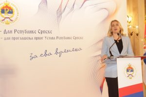„Čast i zadovoljstvo mi je što sam večeras u Beogradu i što već tradicionalno, u organizaciji Predstavništva Republike Srpske u Srbiji, obilježavamo dva izuzetno značajna datuma – 9. januar 1992. godine, dan nastanka Republike Srpske i 28. februar 1992.godine, dan kad je Republika dobila svoj Ustav“, rekla je predsjednica Republike.