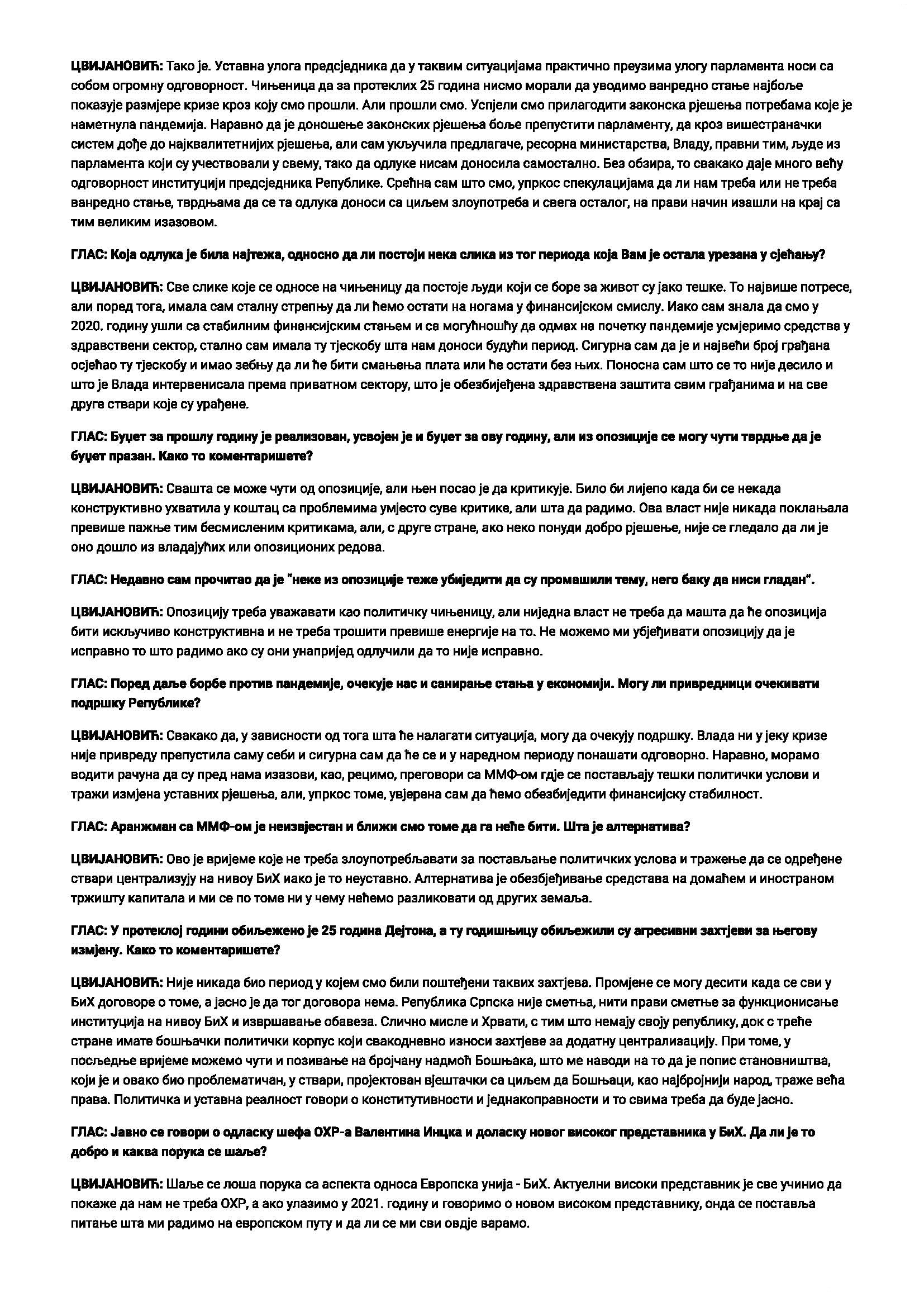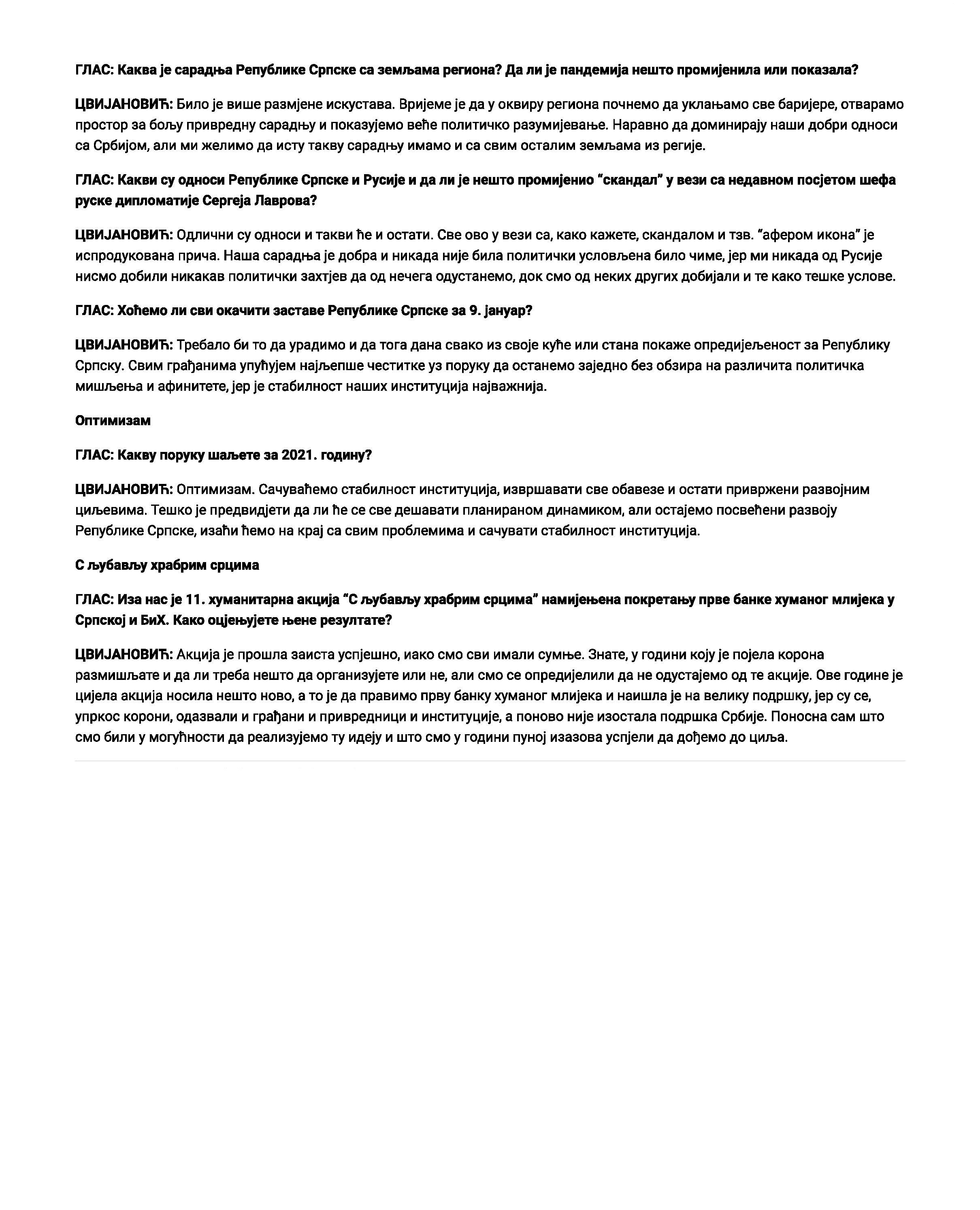 – Godina je bila teška i u znaku pandemije, a naši istinski heroji su bili zdravstveni radnici i otkriću vam da će oni dobiti priznanja – kaže predsjednica Cvijanović u tradicionalnom intervjuu za “Glas Srpske” povodom Dana Republike.