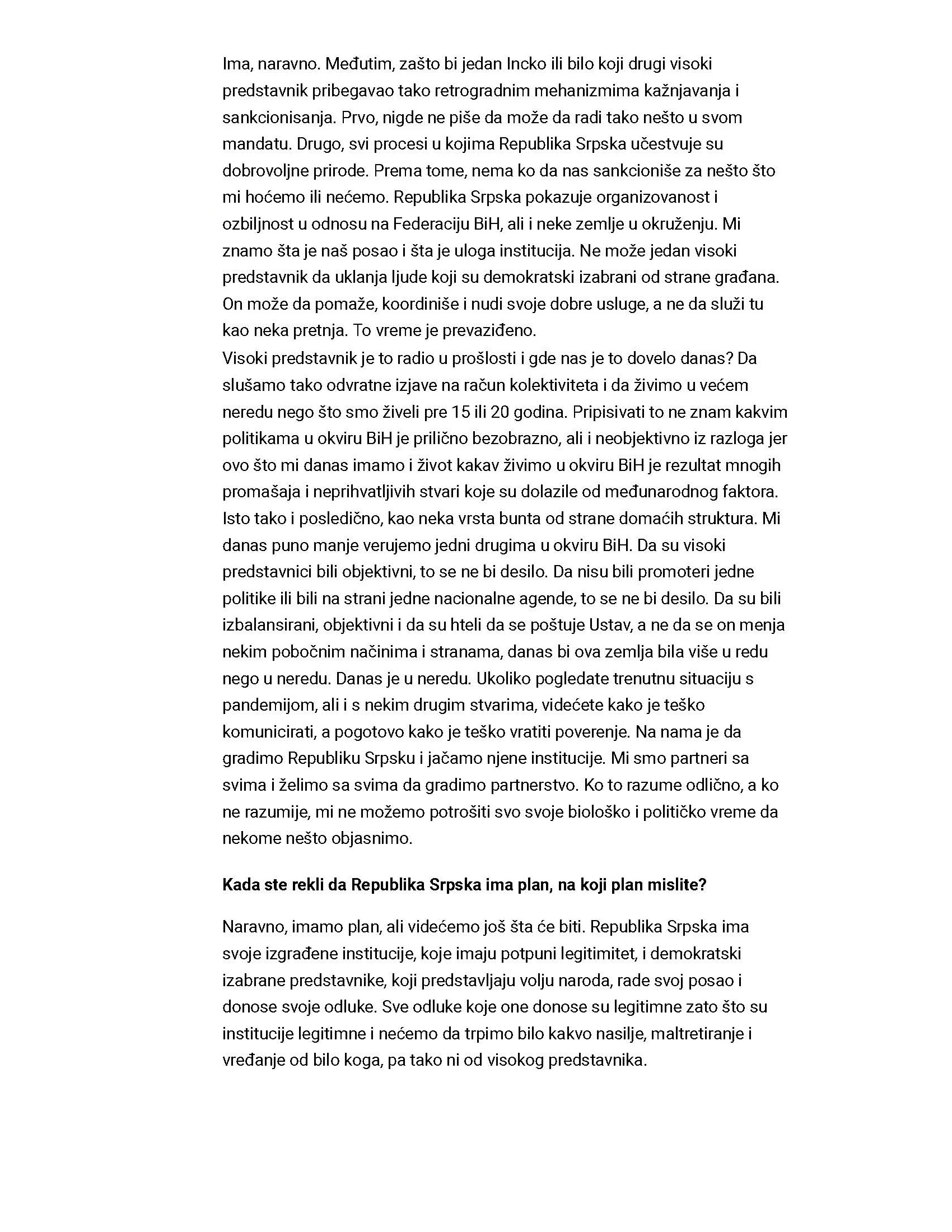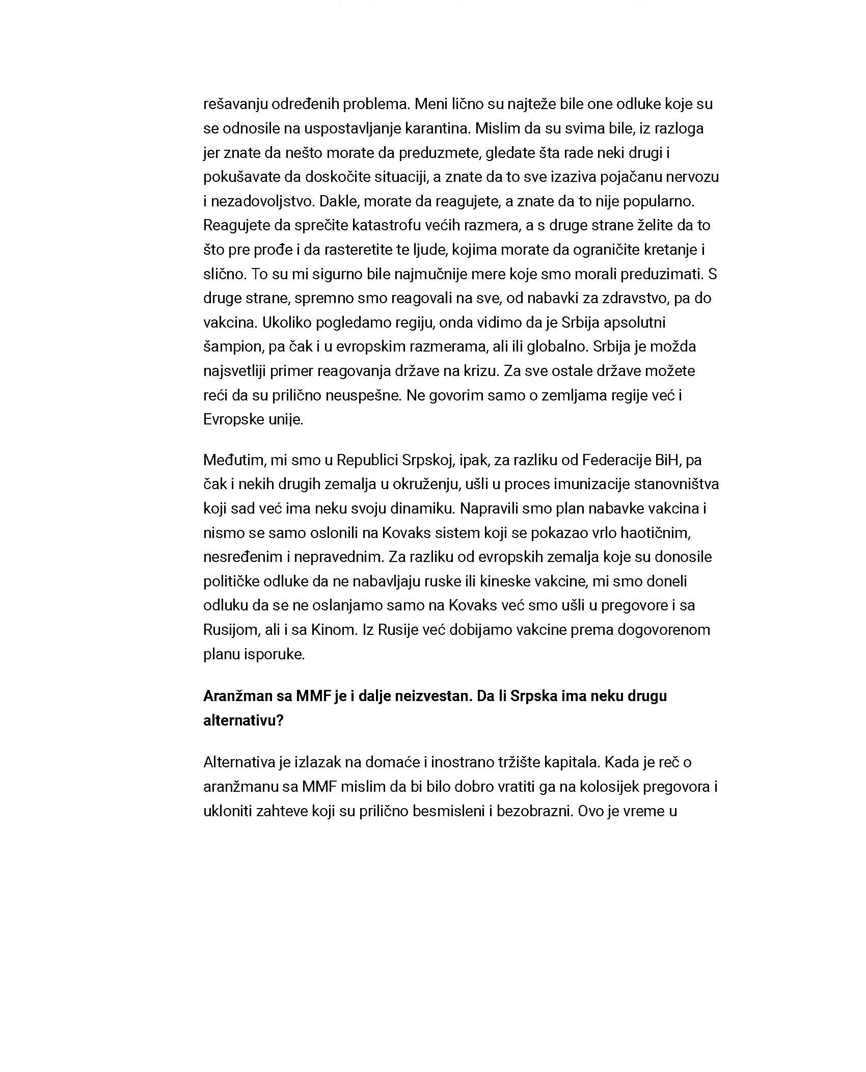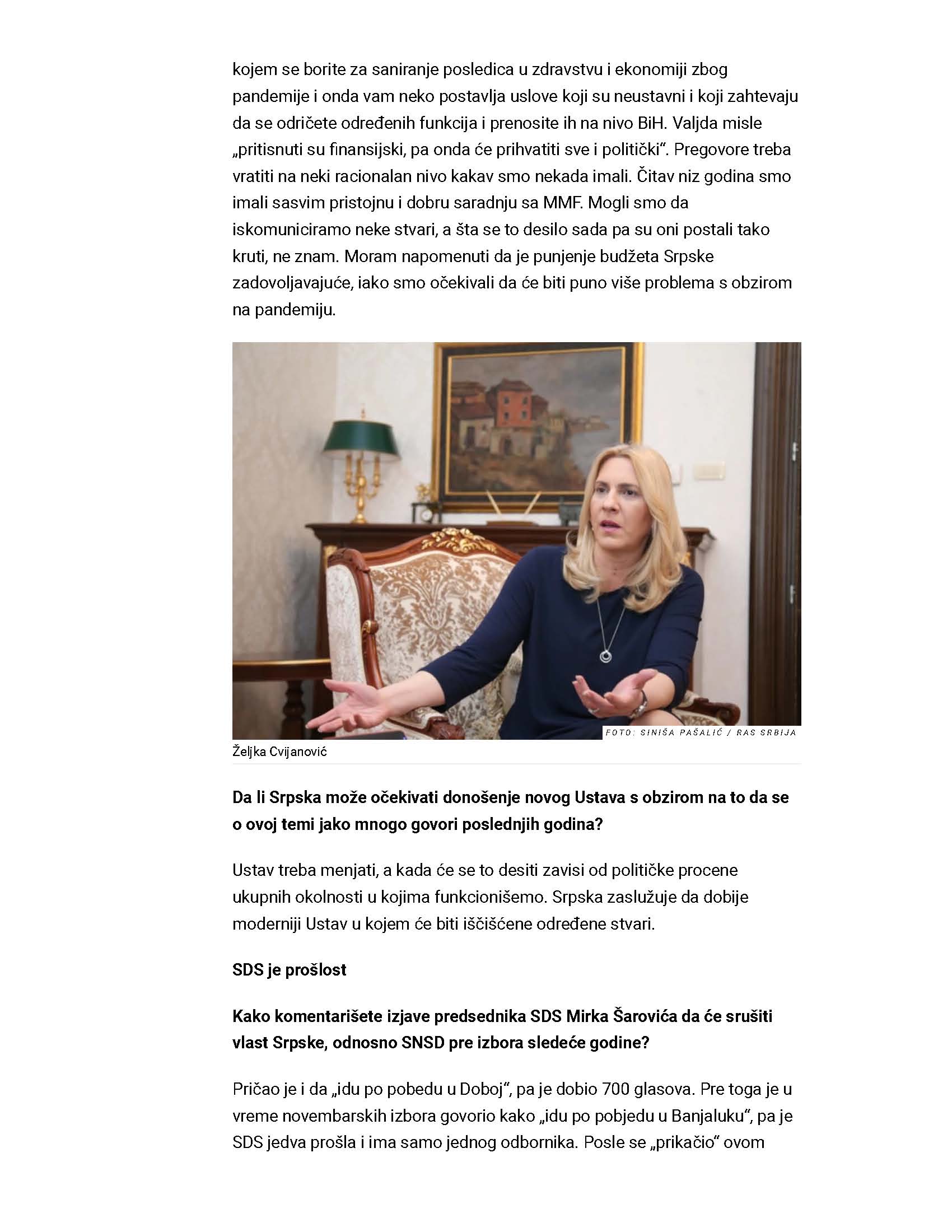 Intervju predsjednice Republike Srpske za „Euroblic“, 13.03.2021. godine
