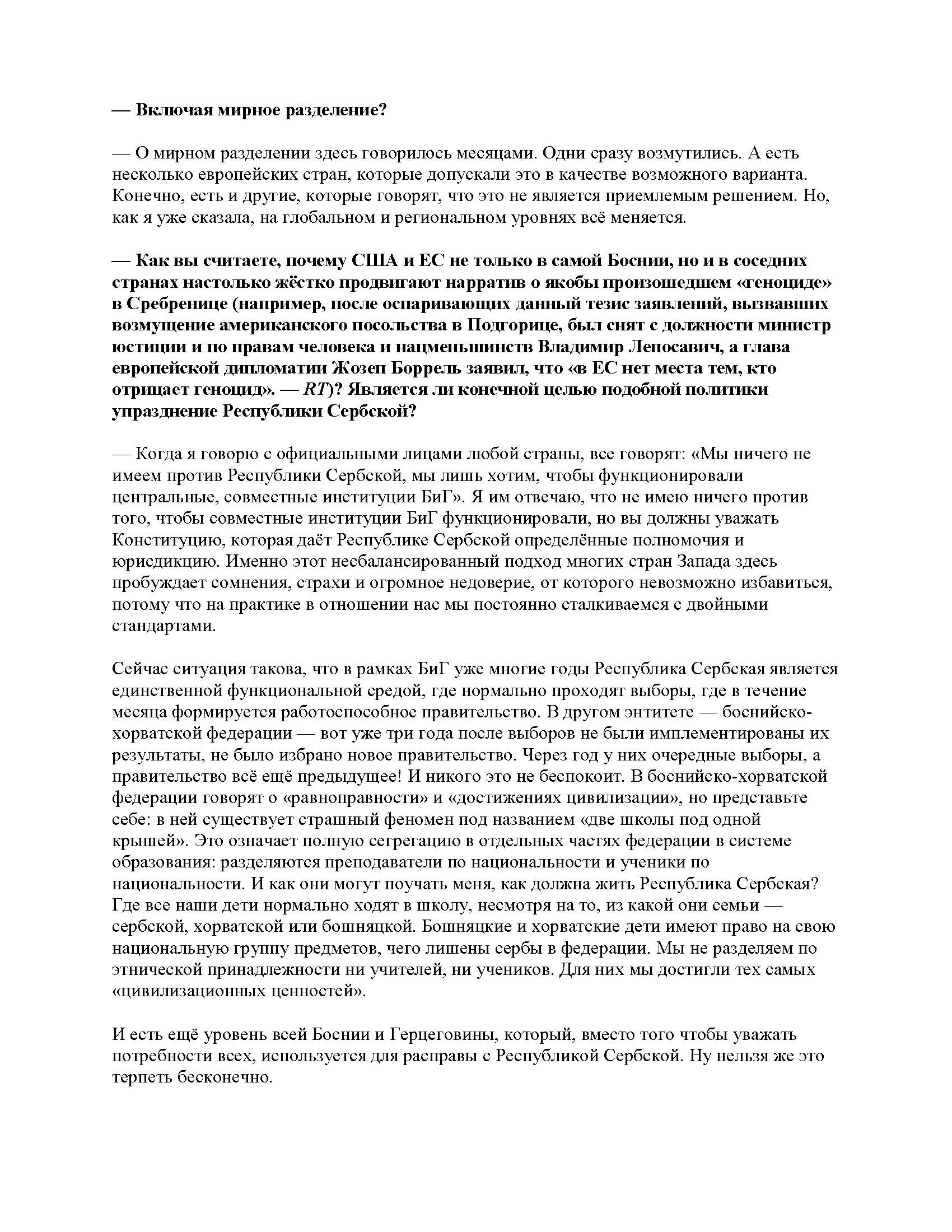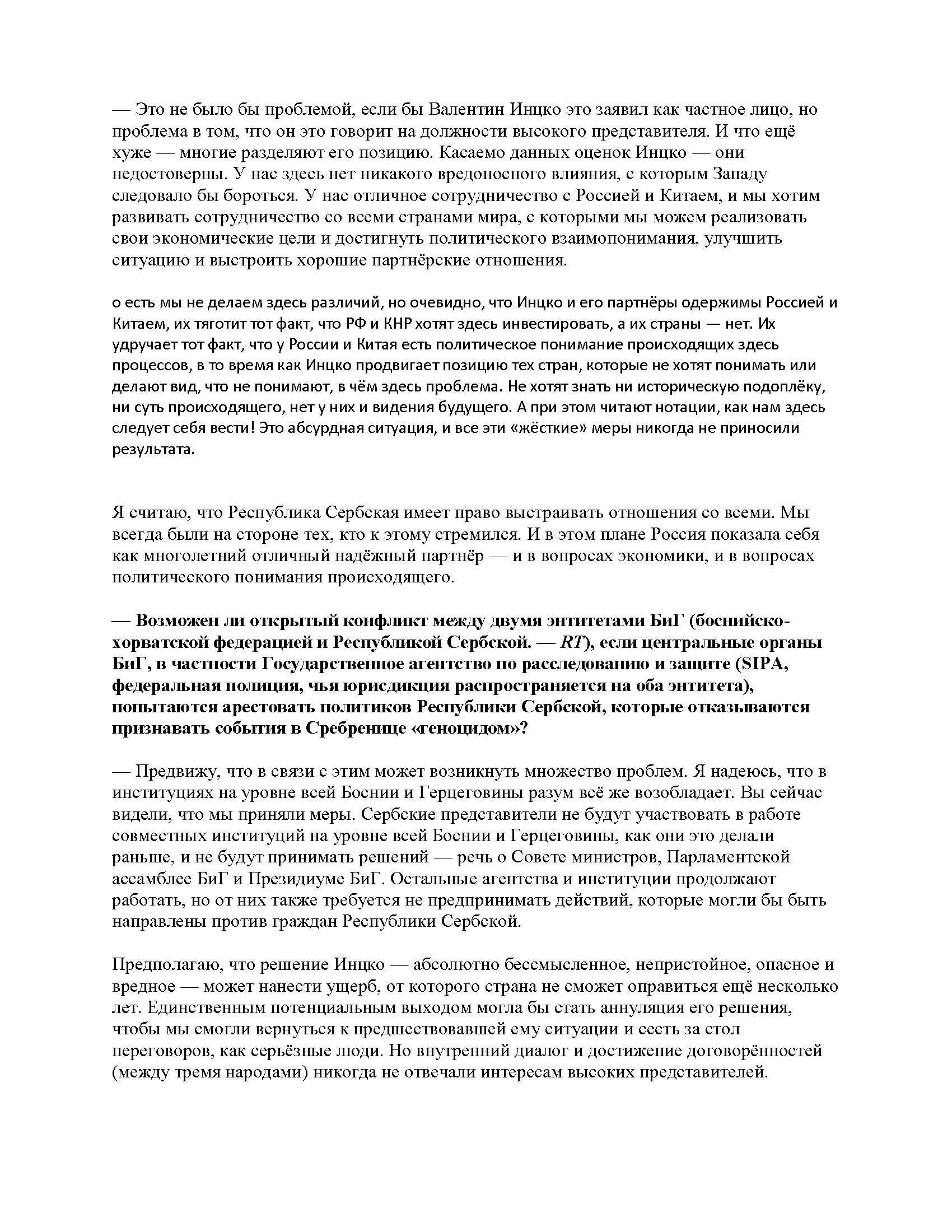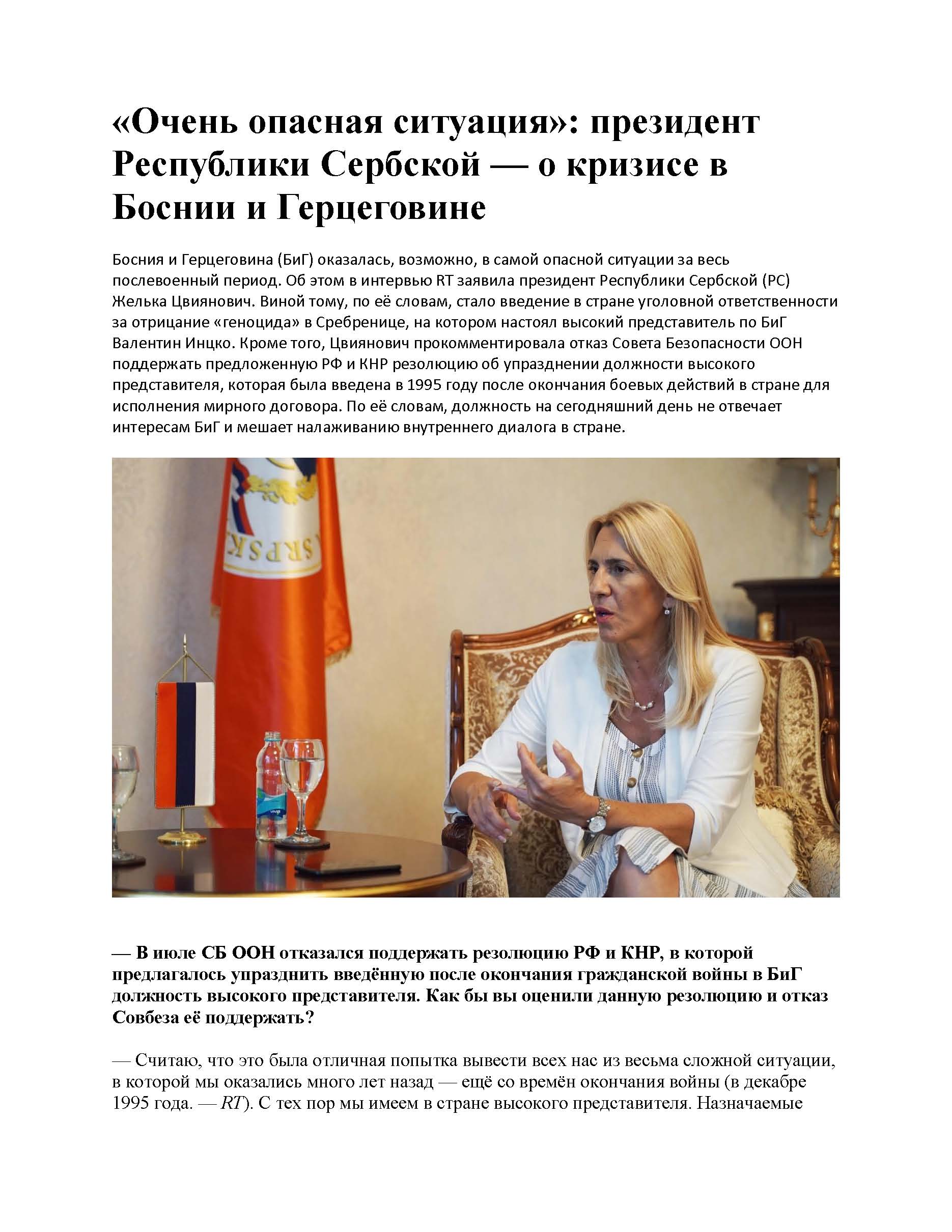 Intervju predsjednice Republike Srpske za ruski servis RT, 04.08.2021. godine
