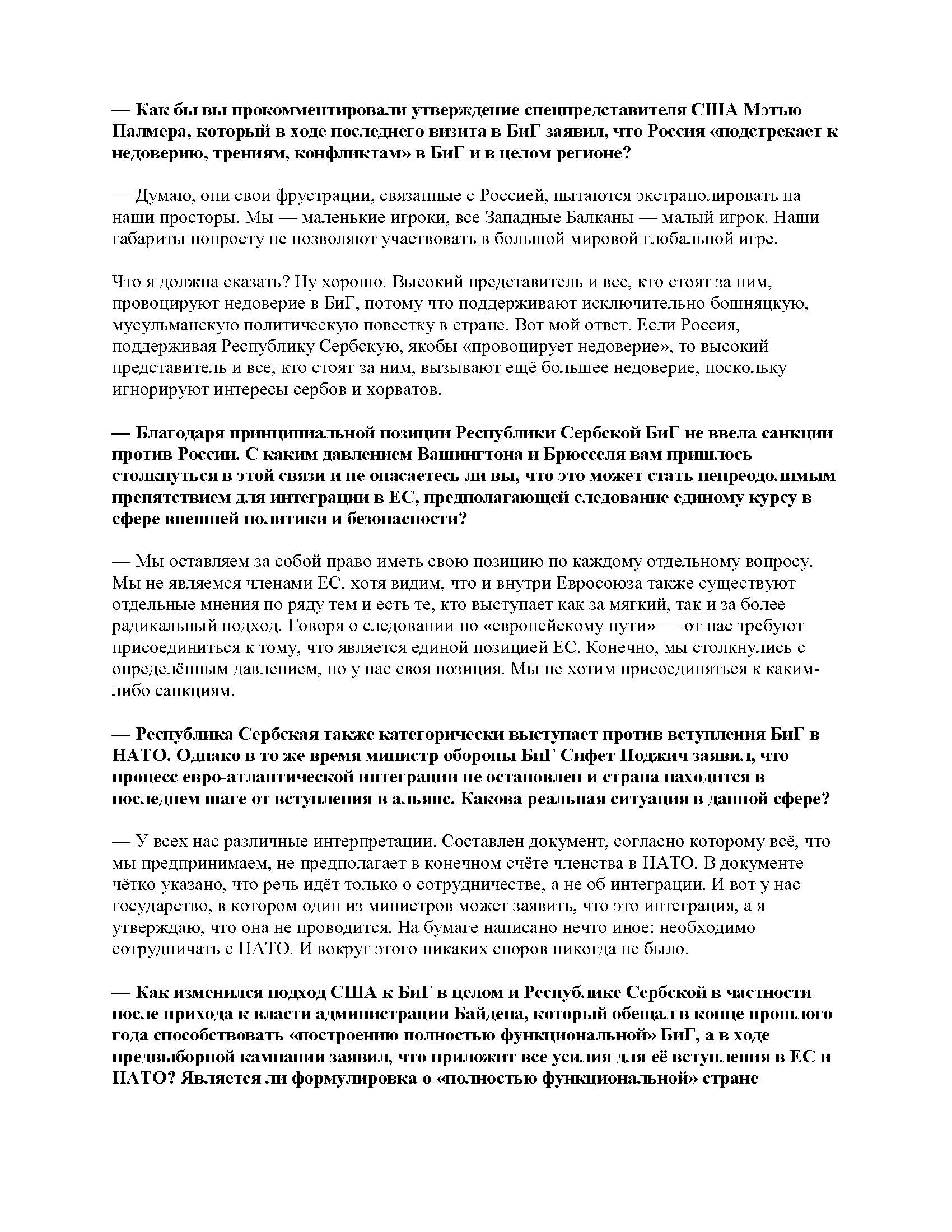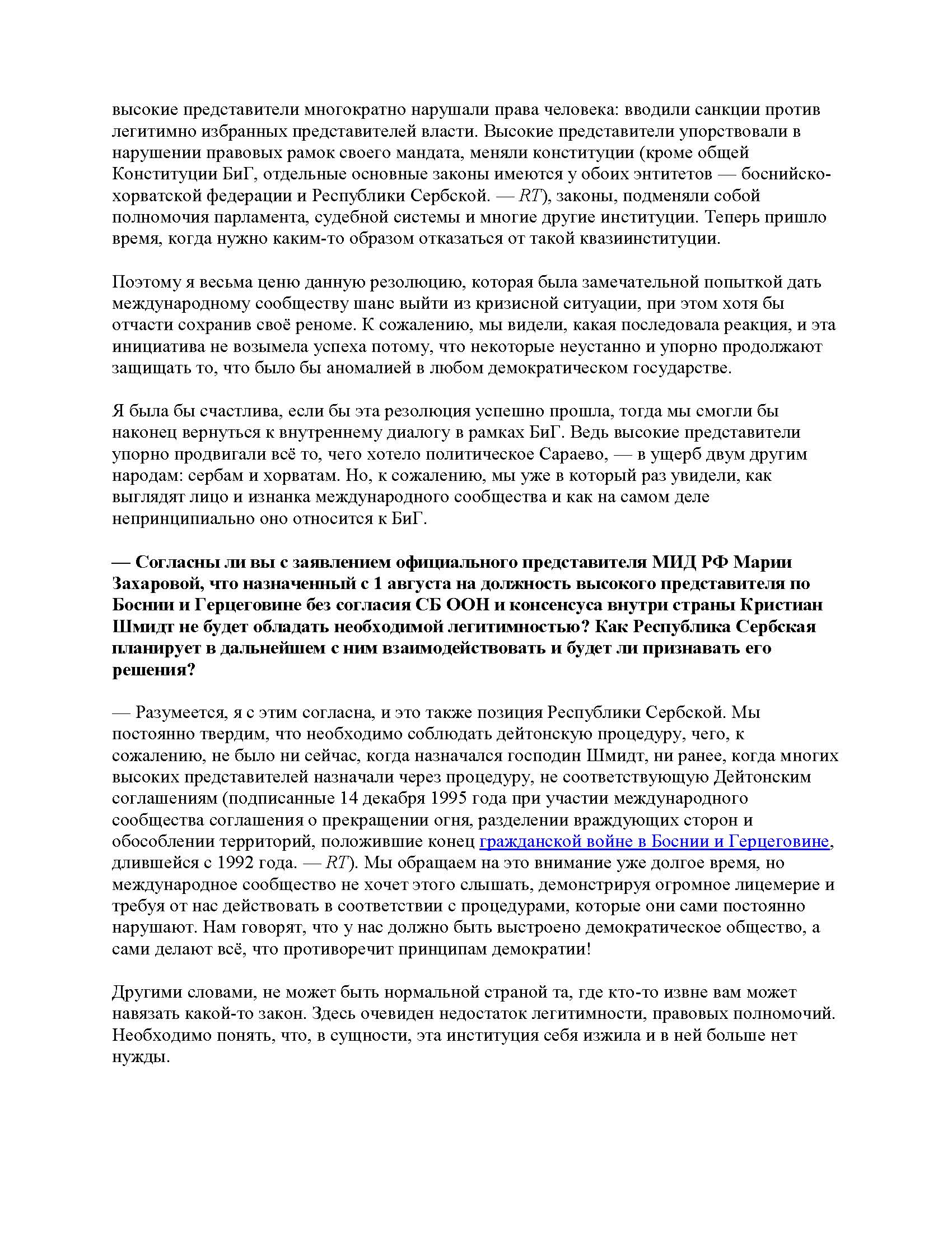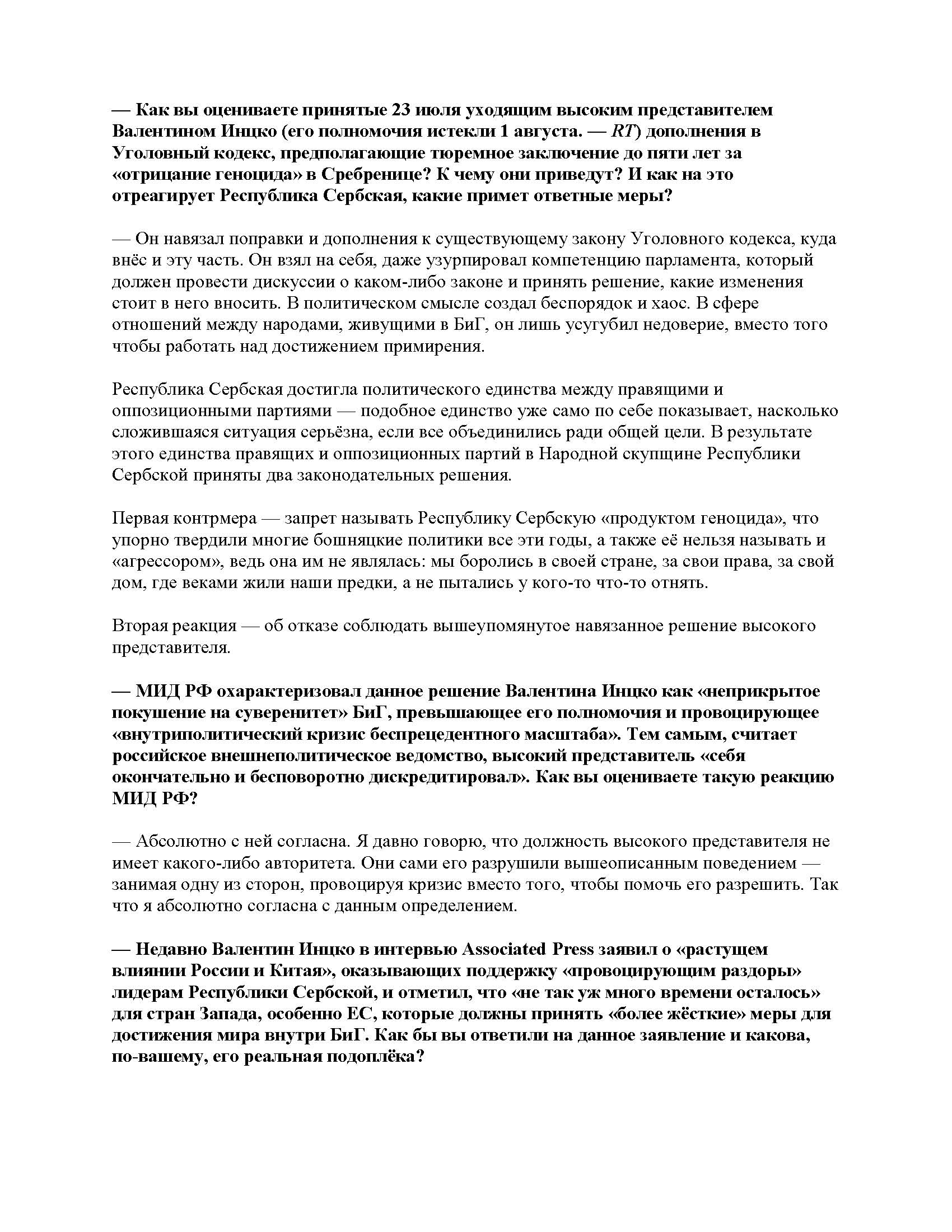 Intervju predsjednice Republike Srpske za ruski servis RT, 04.08.2021. godine