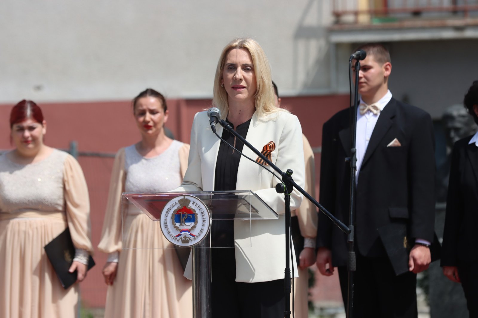 “Stojimo i danas, uvijek spremni da se odupremo ideologijama zla iz prošlosti, ali i sadašnjosti. Kao i svake godine, i ovog 9. maja stojimo ponosno, visoko uzdignutog čela, slaveći slobodu i sjećajući se onih koji su nam tu slobodu podarili”, rekla je predsjednica Cvijanović.