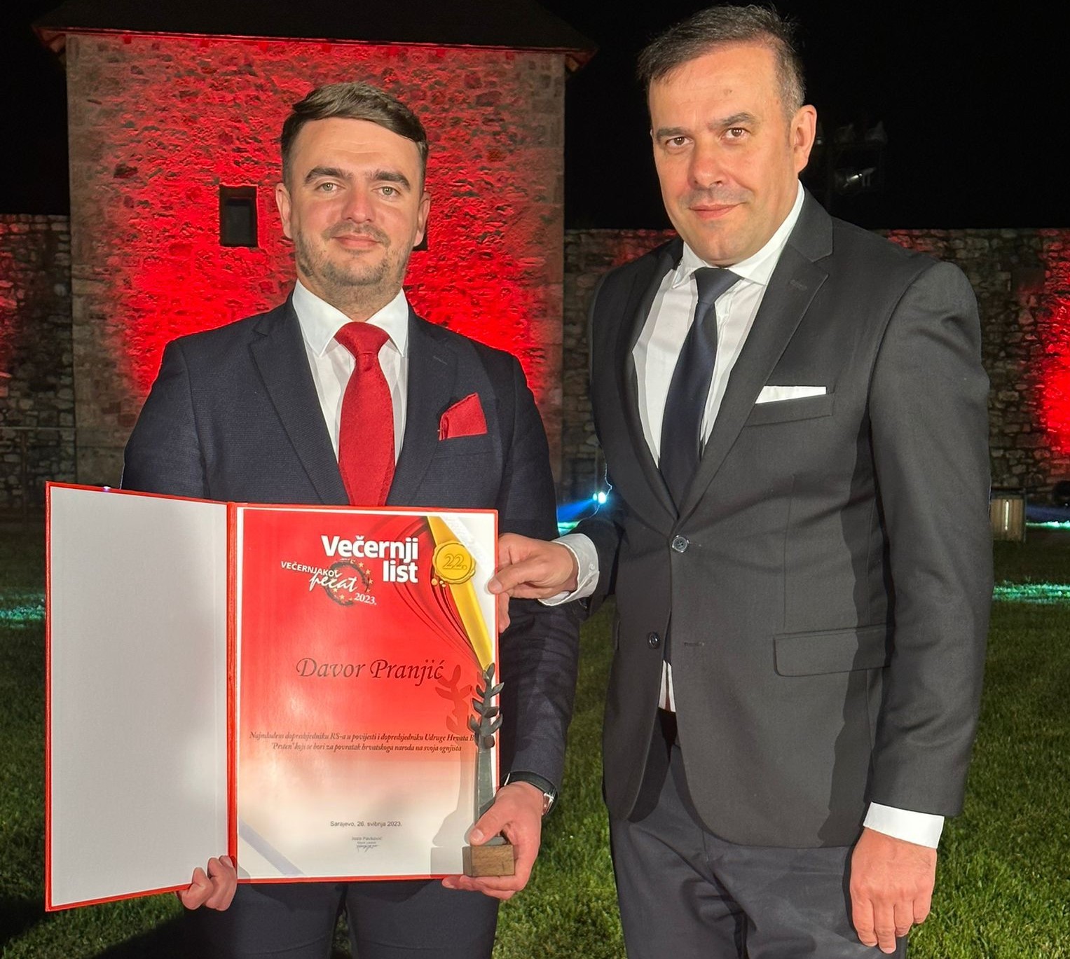 Dopredsjednik Republike Srpske iz reda hrvatskog naroda dr Davor Pranjić zaprimio je nagradu „Večernjakov pečat“ u kategoriji „Politika i lobisti za BiH“. Na svečanosti 22. Večernjakovog pečata održanoj večeras, od 20 kandidata, Pranjić je odabran za osobu koja je ostavila najviše traga kroz svoj prošlogodišnji rad i djelovanje. „Čast mi je i zadovoljstvo biti dobitnikom…