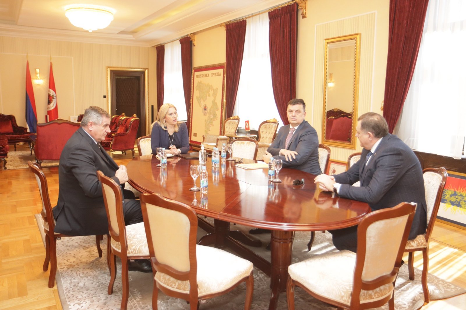 U Palati Republike danas je, povodom najavljenog velikog priliva migranata, održan sastanak najviših zvaničnika Republike Srpske. Na sastanku, koji je sazvan na inicijativu predsjednice Republike Srpske Željke Cvijanović, učestvovali su predsjednik Narodne Skupštine Republike Srpske Nedeljko Čubrilović, predsjednik Vlade Republike Srpske Radovan Višković, srpski član Predsjedništva BiH Milorad Dodik i ministar unutrašnjih poslova Republike Srpske…