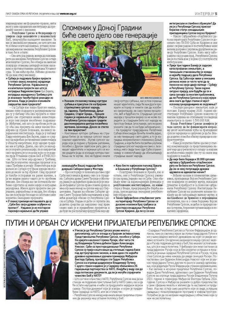 Intervju predsjednika Republike Srpske za „SRPSKO KOLO“