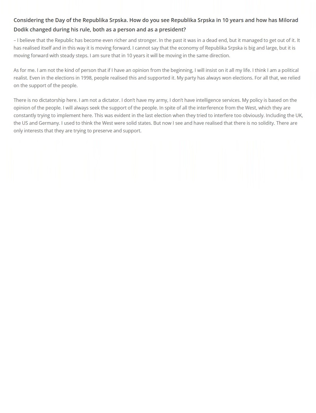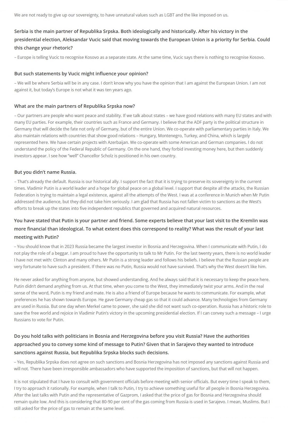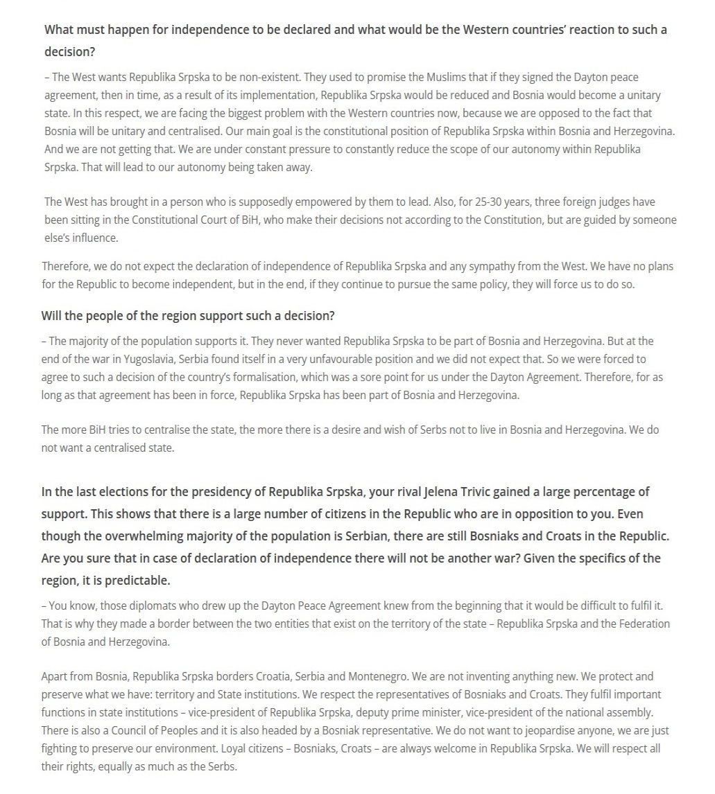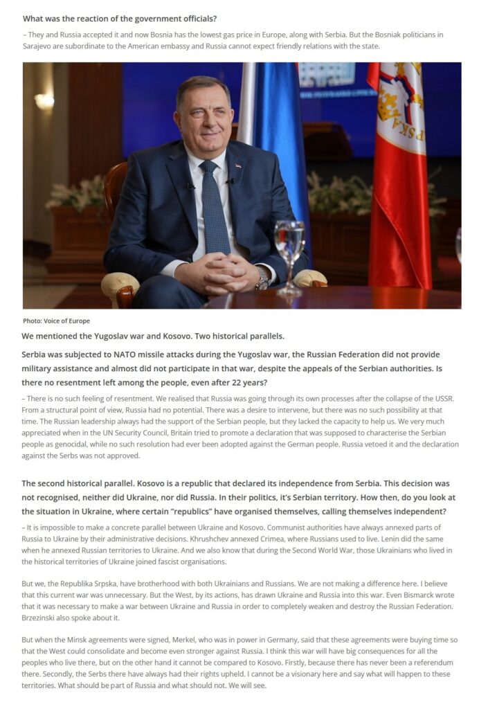 Intervju predsjednika Republike Srpske za “Voice of Europe“, 09.01.2024. godine