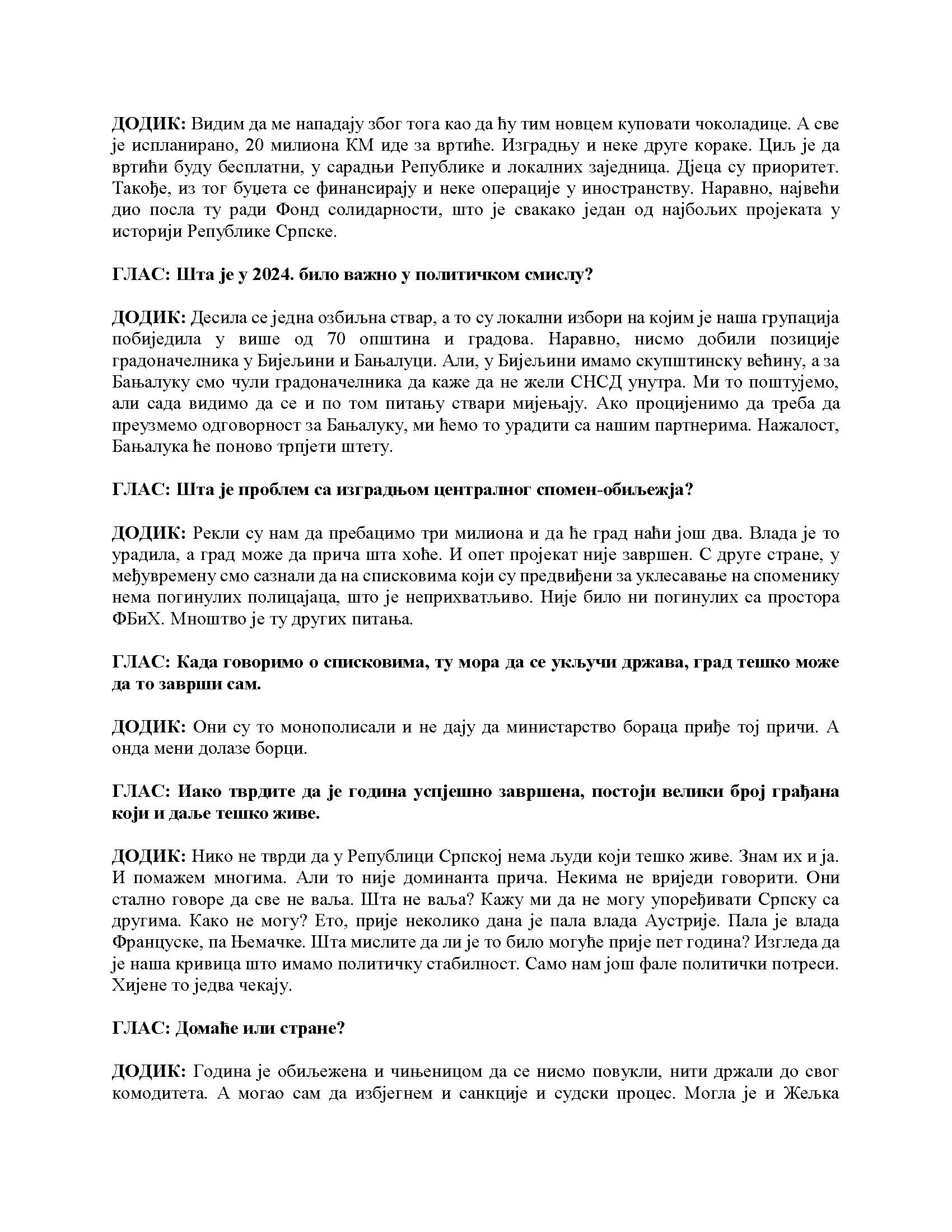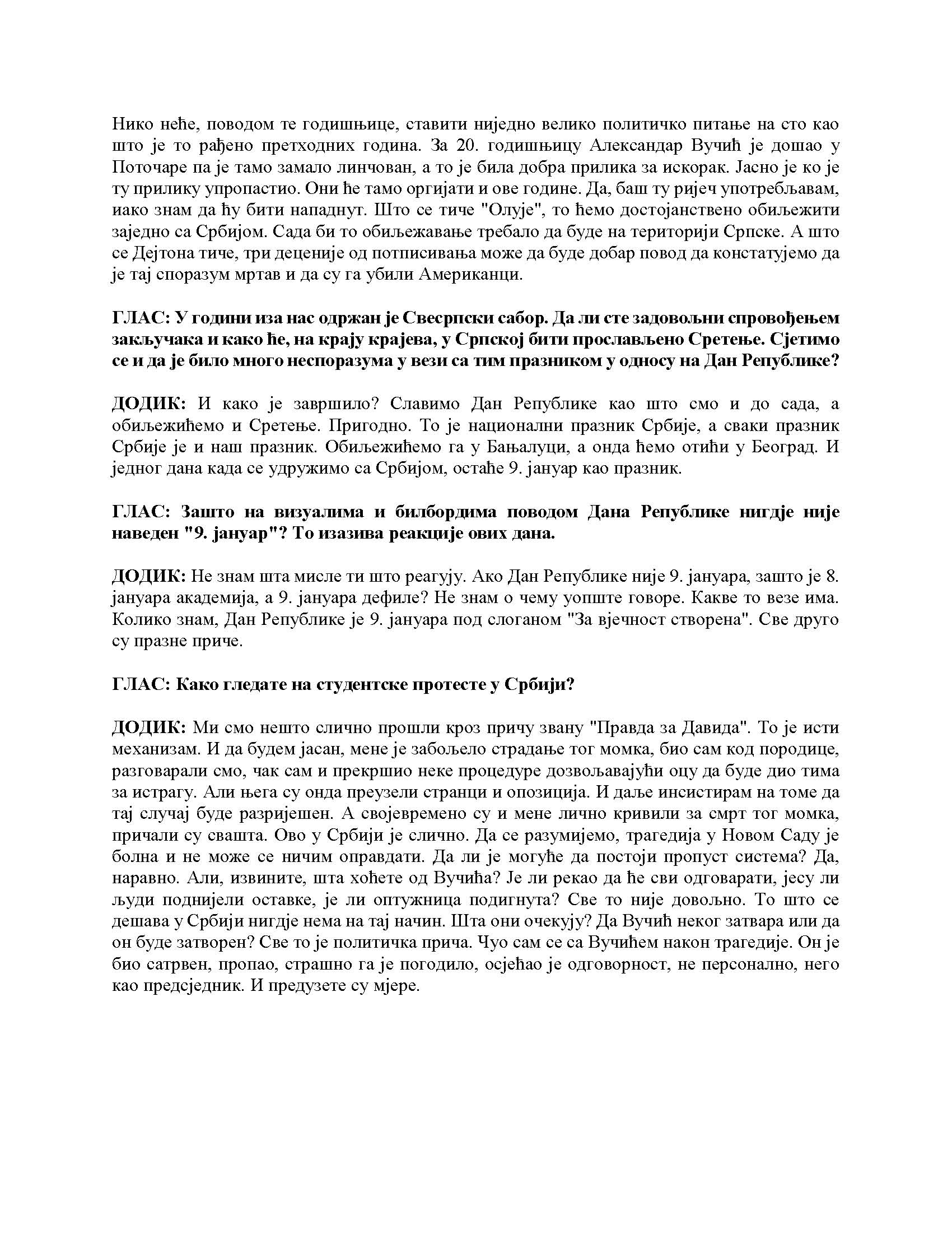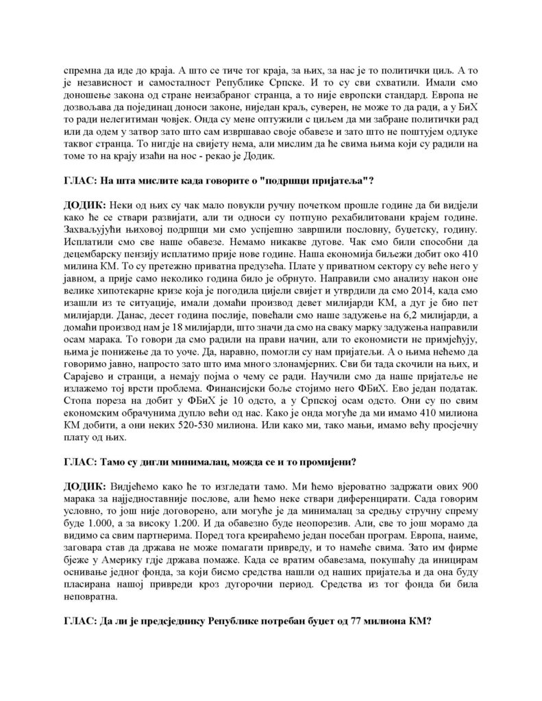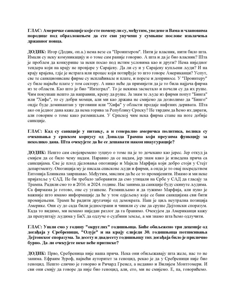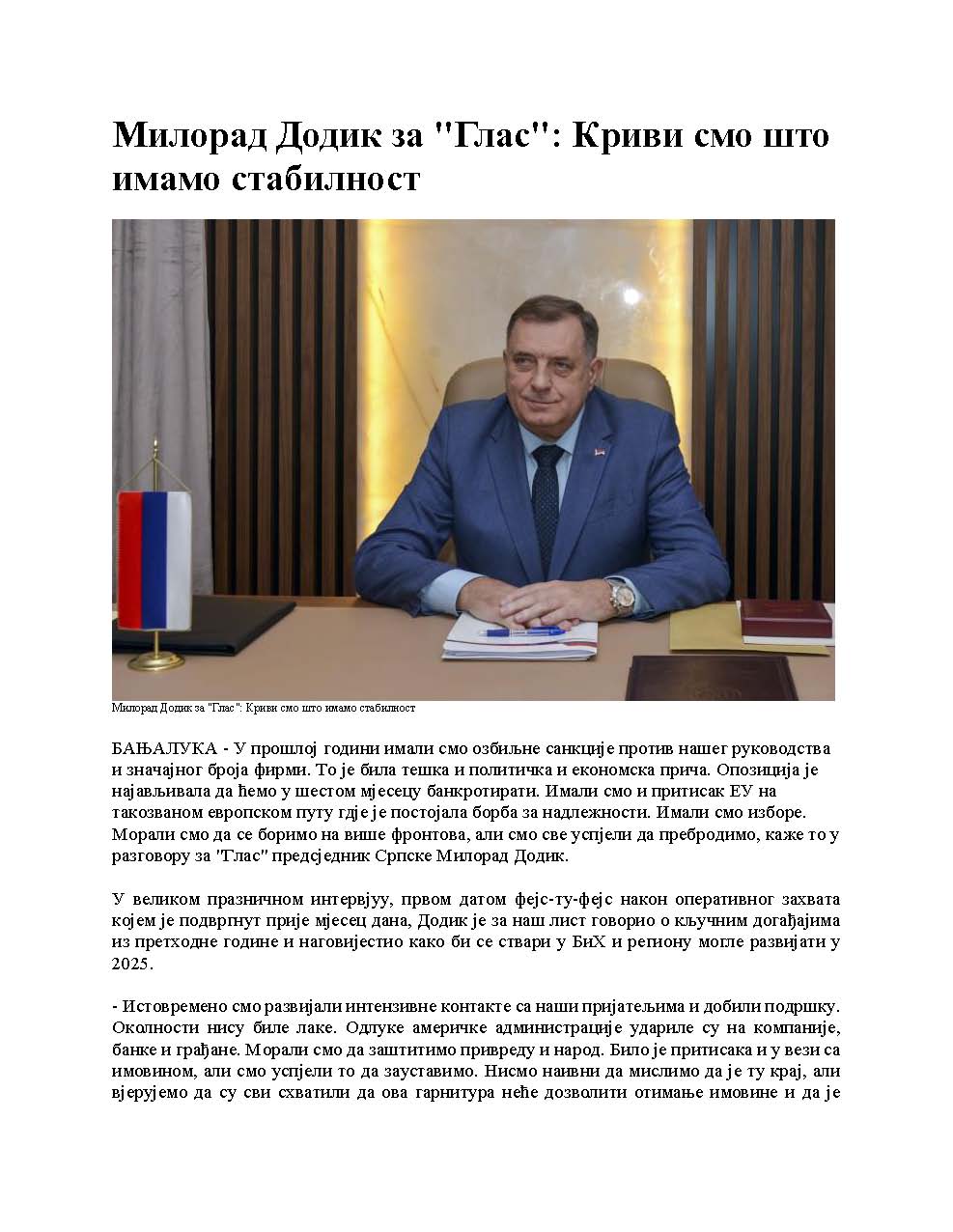 Intervju predsjednika Republike Srpske za Glas Srpske, 06.01.2025. godine