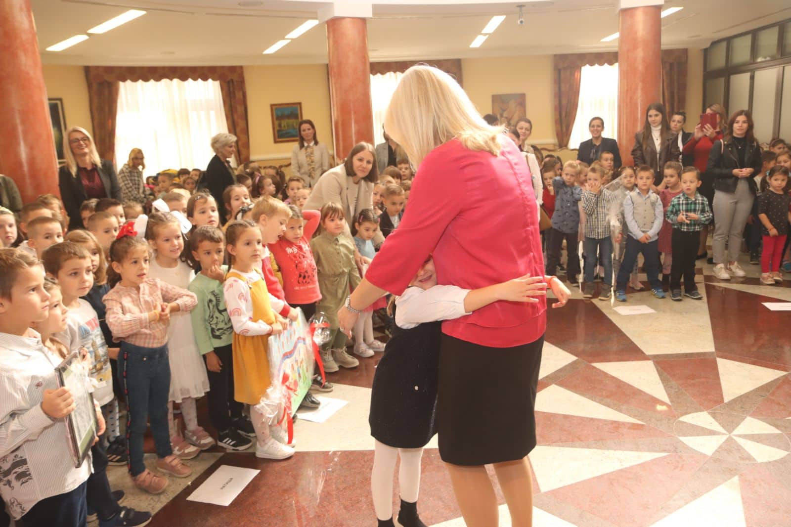 Предсједница Републике угостила је дјечицу из вртића “Радост”, “Тијана”, “Плави чуперак”, “Бамби”, “Наташа”, “Анђелак” и “Пертлица”.