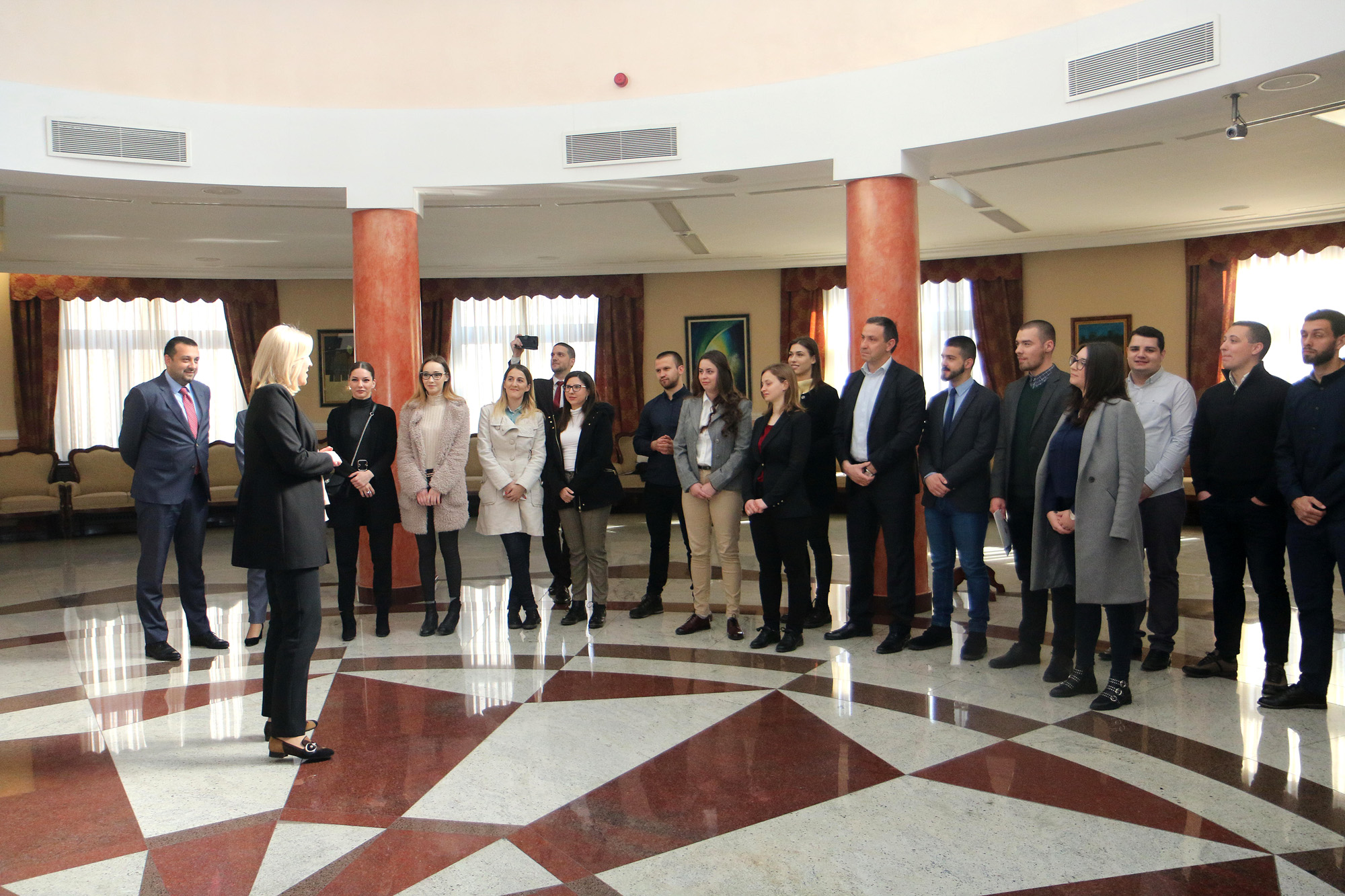 Студенти завршних година и апсолвенти права, економије и политичких наука Универзитета у Бањалуци, у оквиру Програма стажирања који организује Народна скупштина Републике Српске, посјетили су данас Палату Републике гдје су се упознали са радом и организацијом Службе предсједника, те уставним надлежностима и овлаштењима предсједника Републике Српске.