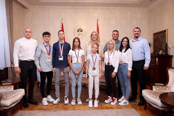Предсједница Републике Српске Жељка Цвијановић уприличила је данас у Палати Републике пријем за такмичаре и руководство бањалучког Карате клуба „Енергија-Гравe“ Овом приликом, предсједница Цвијановић честитала је младим и талентованим такмичарима и руководству клуба на бројним медаљама са европских, медитеранских и балканских првенстава, те других значајних турнира, које су са великом радошћу и поносом дочеканe у…