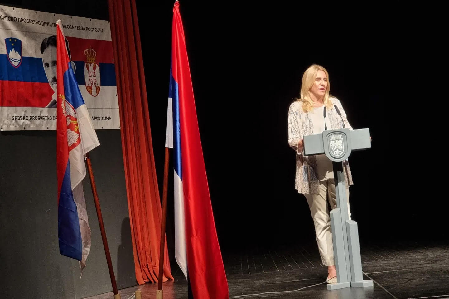 Предсједница Републике Српске Жељка Цвијановић присуствовала је вечерас, у Словенији обиљежавању 30 година од оснивања Српског просвјетног друштва „Никола Тесла“ из Постојне. Предсједница Републике Српске је истакла да то друштво пуне три деценије доприноси очувању српског националног идентитета у овој земљи. Предсједница Републике је навела да је увијек лијепо видјети сународнике у дијаспори, окупљене око…