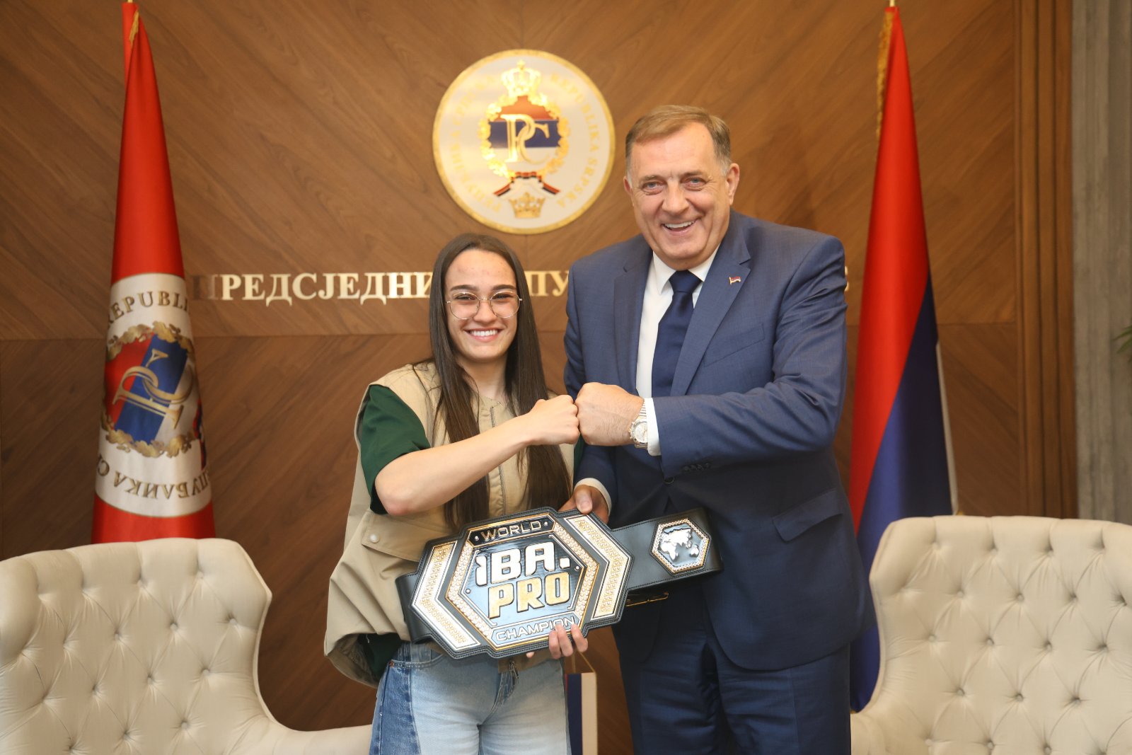 Предсједник Републике Српске Милорад Додик уприличио је данас пријем за боксерку Сару Ћирковић, која је освојила ИБА професионалну титулу првака свијета. Предсједник Републике Српске честитао је Сари Ћирковић освајање титуле и уручио јој новчану награду за овај историјски успјех. Предсједник Додик истакао је да је Сара учинила поносном Републику Српску и показала како прави шампиони…