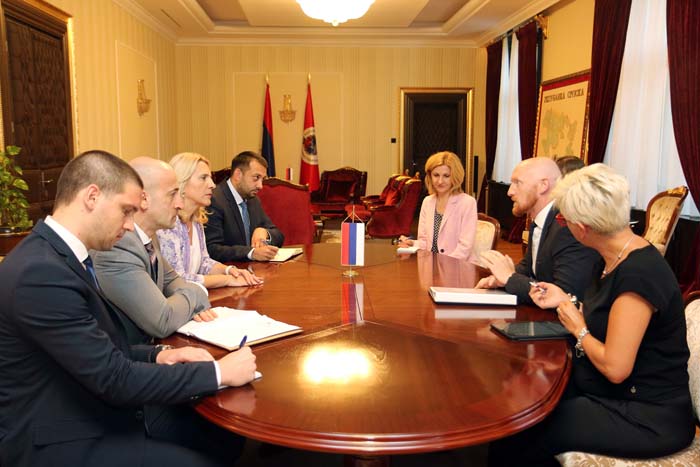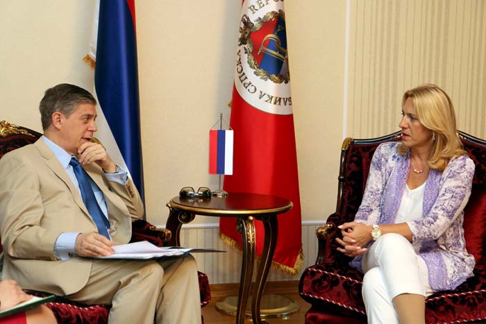 Предсједница Републике Српске Жељка Цвијановић разговарала је данас у свом кабинету са шефом Делегације ЕУ у БиХ и специјалним представником ЕУ у БиХ Ларс Гунаром Вигемарком /Lars-Gunnar Wigemark/. Актуелна политичка и економска ситуација у Републици Српској и БиХ, са посебним акцентом на њихов европски пут, биле су доминантне теме састанка. Предсједница Цвијановић је овом приликом…