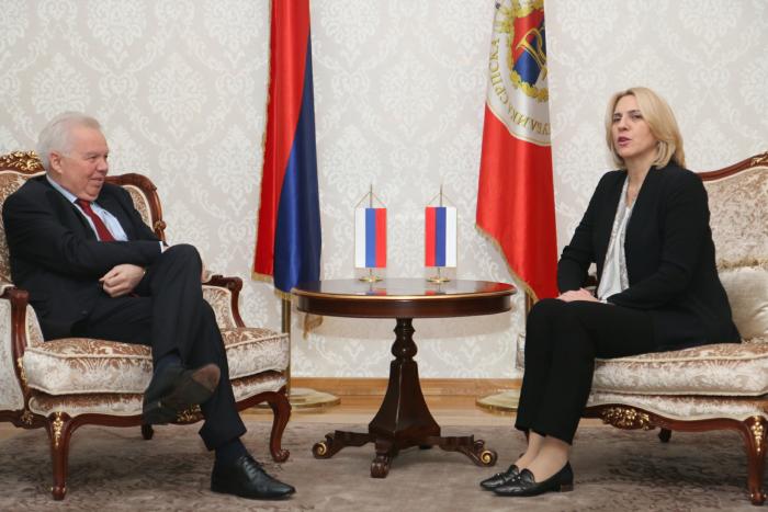 Предсједница Републике Српске Жељка Цвијановић разговарала је данас у Бањалуци са амбасадором Руске Федерације у БиХ Петром Иванцовим. Током састанка саговорници су размијенили мишљење о актуелној политичкој и економској ситуацији у Републици Српској и БиХ, с акцентом на формирање власти након протеклих општих избора. Предсједница Републике је овом приликом истакла да је Република Српска прва…