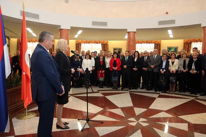 Предсједница Републике Српске Жељка Цвијановић присуствовала је вечерас у Банском двору свечаном пријему који су организовали градоначелник Бањалуке Игор Радојичић и предсједник Скупштине града Зоран Талић поводом наступајућих празника.
