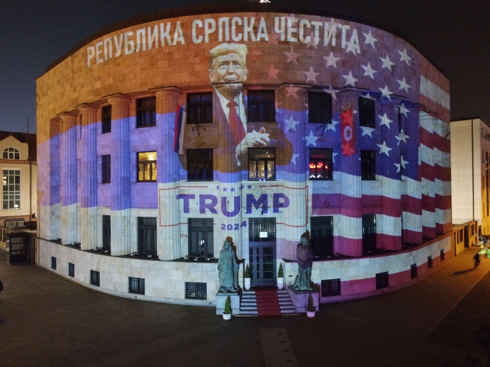 Палата Републике вечерас је освијетљена бојама америчке заставе, поводом побједе Доналда Трампа на предсједничким изборима у САД-у. Фотографије: Кабинет предсједника Републике Српске/Борислав Здриња